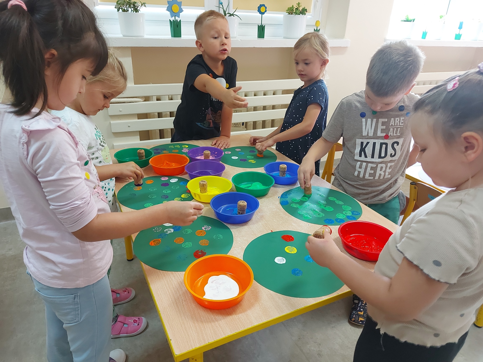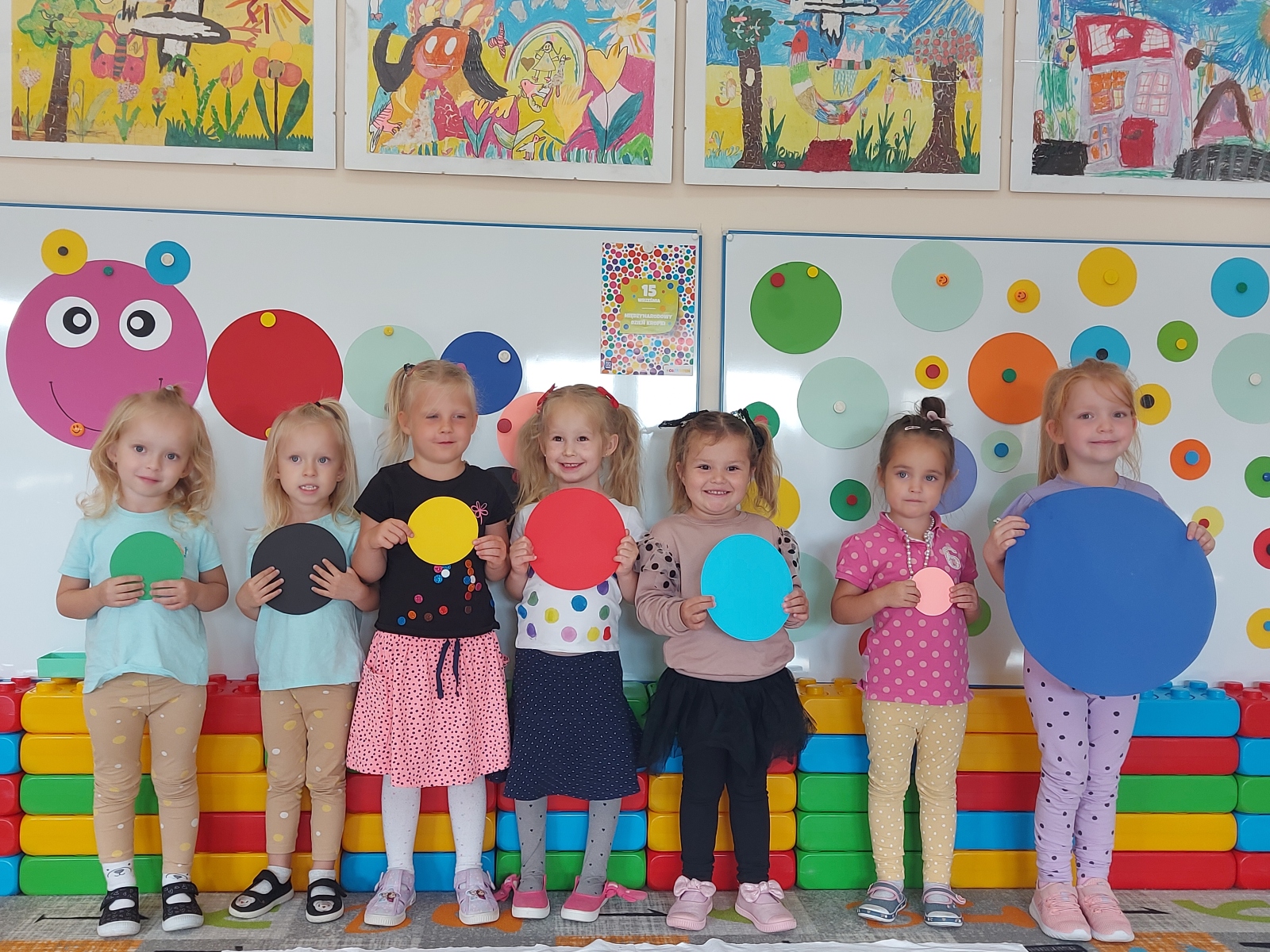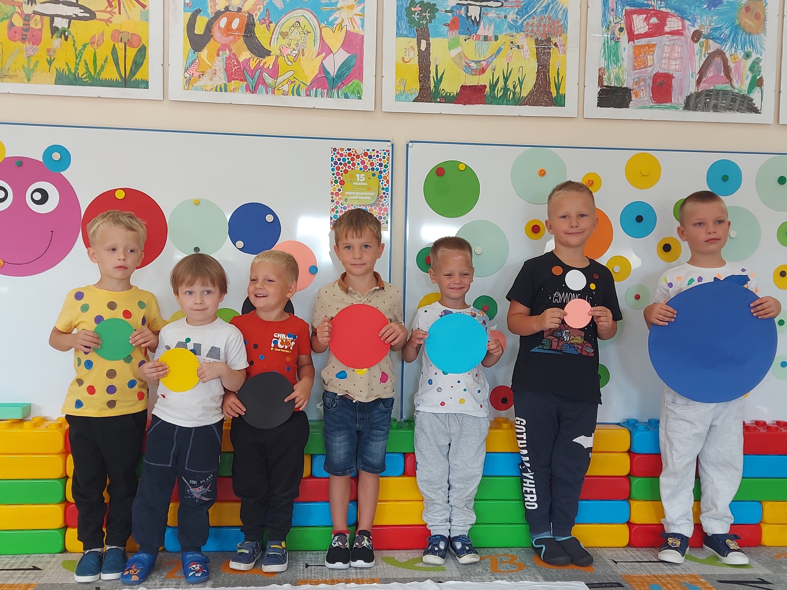 Dnia 15.09.2025r. w Przedszkolu w Dzierżążnie dzieci obchodziły Międzynarodowy Dzień Kropki. Na zajęciach edukacyjnych były różne zabawy wypełnione kolorowymi kropkami. Były utwory literackie z kropkami, zabawy ruchowe przy muzyce i piosenkach, zabawy plastyczne, np. stemplowanie farbami plakatowymi na temat „Piłka z kropkami”. Tego dnia dzieci ubrane w kropki szukały ich wszędzie. Okazało się, że towarzyszą dzieciom w codziennym życiu. A z kropek można narysować słońce, kolorową kulę, kwiatek, piłkę, koło, biedronkę w kropki.