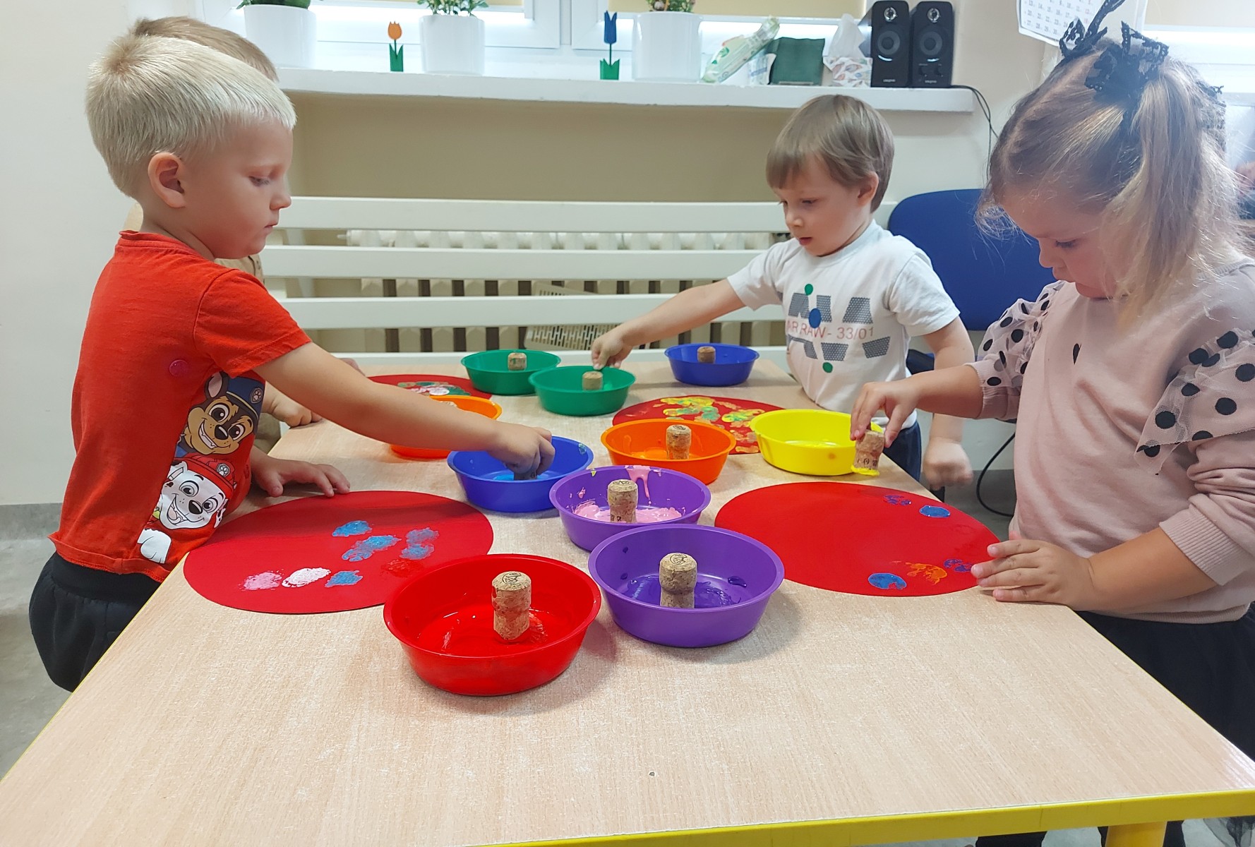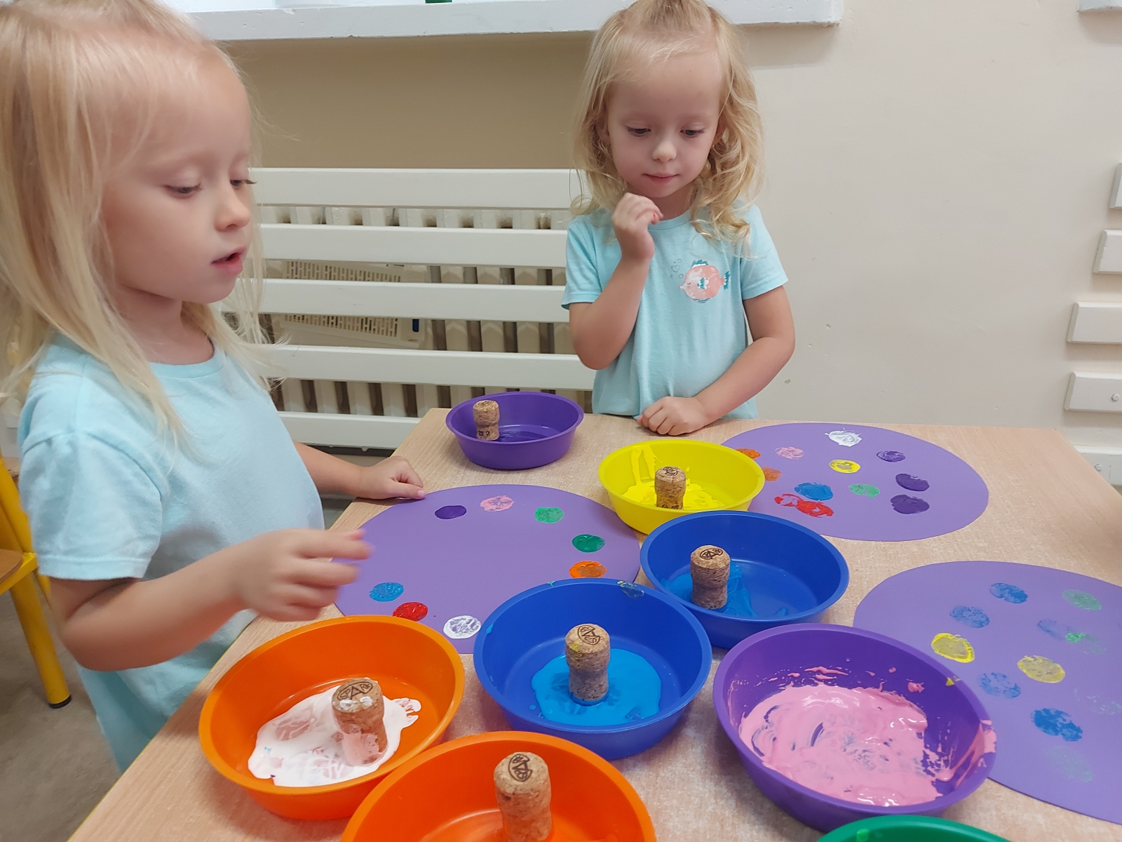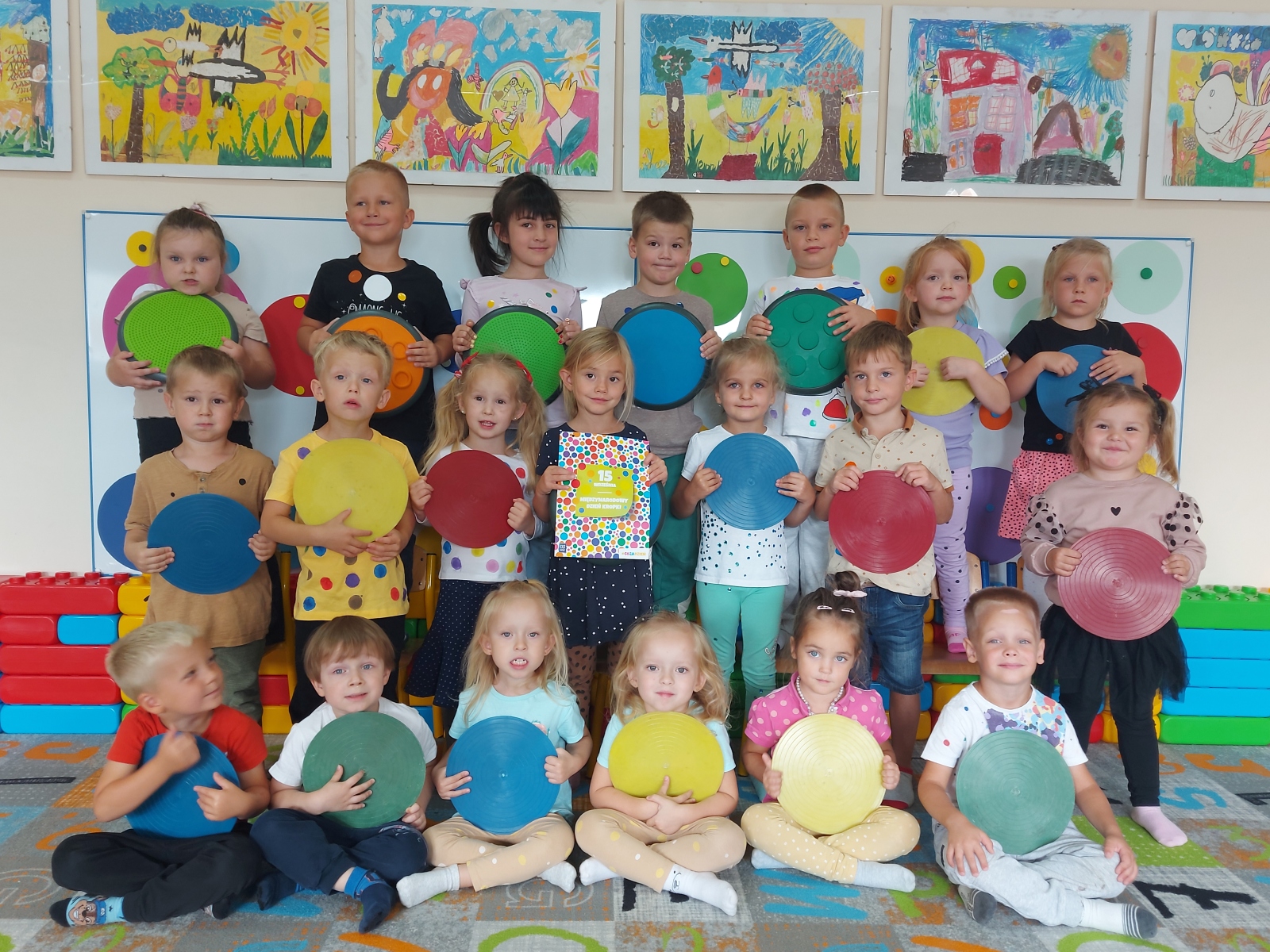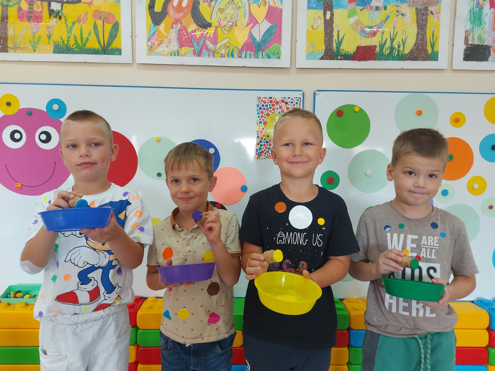 Dnia 15.09.2025r. w Przedszkolu w Dzierżążnie dzieci obchodziły Międzynarodowy Dzień Kropki. Na zajęciach edukacyjnych były różne zabawy wypełnione kolorowymi kropkami. Były utwory literackie z kropkami, zabawy ruchowe przy muzyce i piosenkach, zabawy plastyczne, np. stemplowanie farbami plakatowymi na temat „Piłka z kropkami”. Tego dnia dzieci ubrane w kropki szukały ich wszędzie. Okazało się, że towarzyszą dzieciom w codziennym życiu. A z kropek można narysować słońce, kolorową kulę, kwiatek, piłkę, koło, biedronkę w kropki.