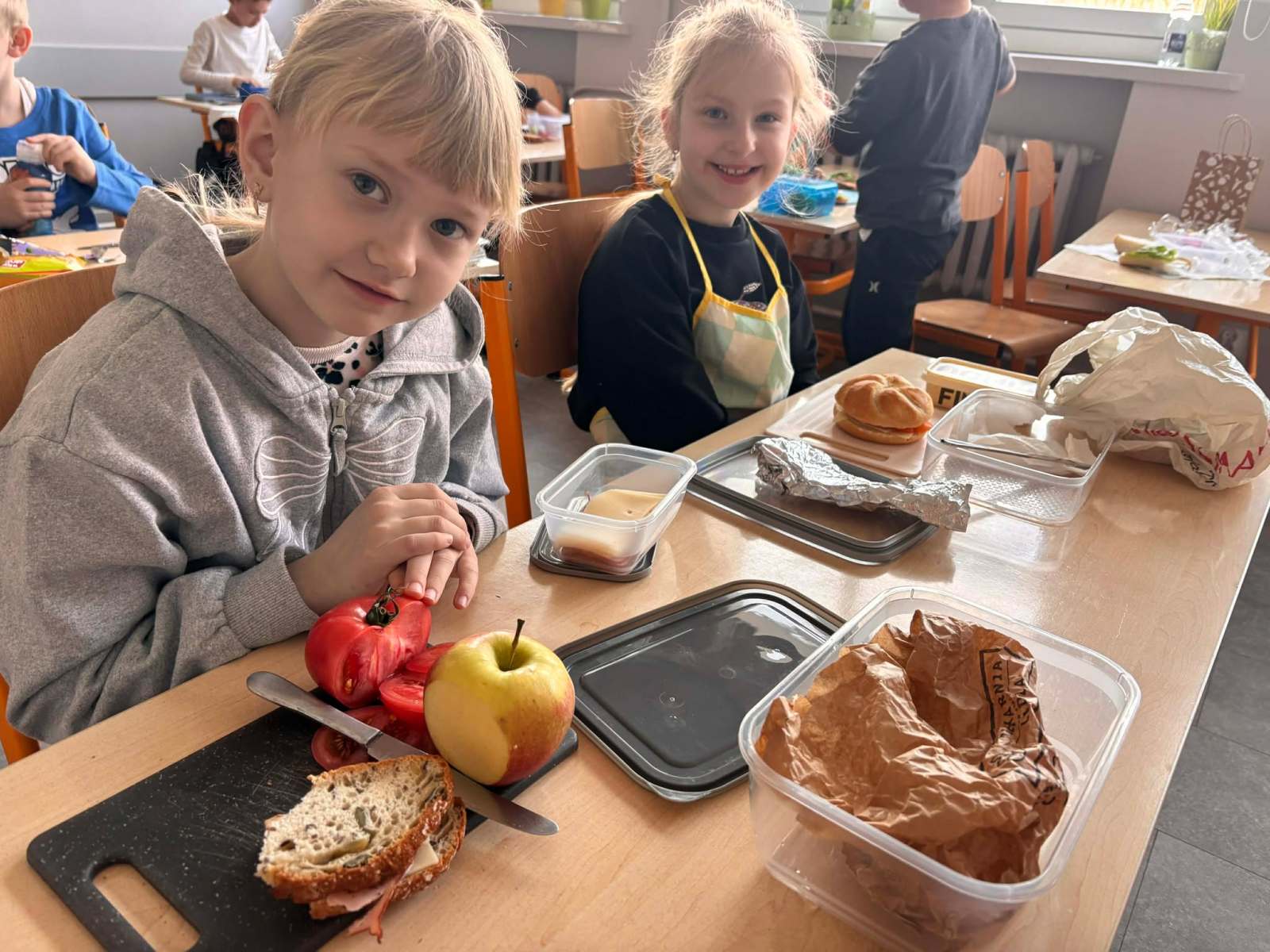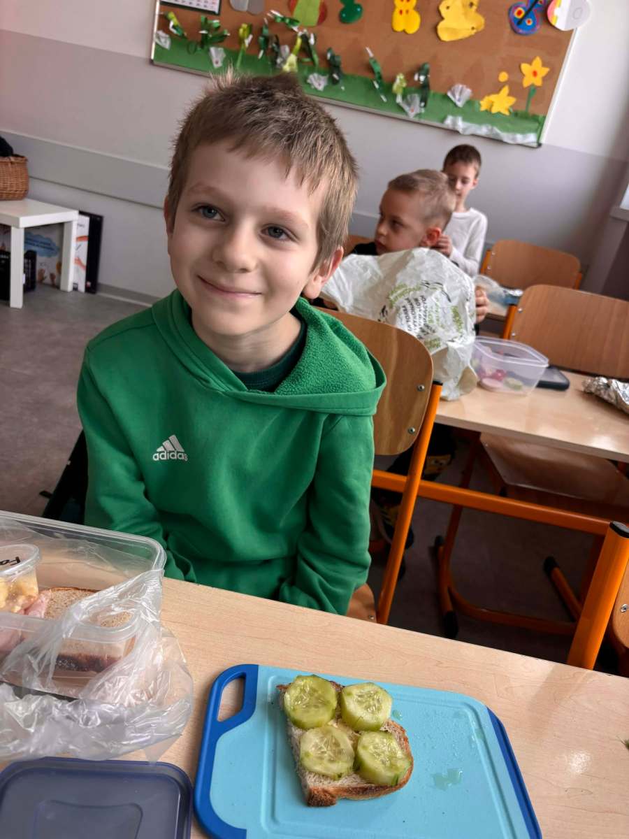 Nasze sale lekcyjne na chwilę zamieniły się w prawdziwe studia gastronomiczne. Zapach świeżych warzyw i owoców wypełnił korytarze, a uczniowie wykazali się niezwykłą pomysłowością, przygotowując kolorowe, wieloskładnikowe kanapki, pełne witamin sałatki, fantazyjne owocowe szaszłyki.