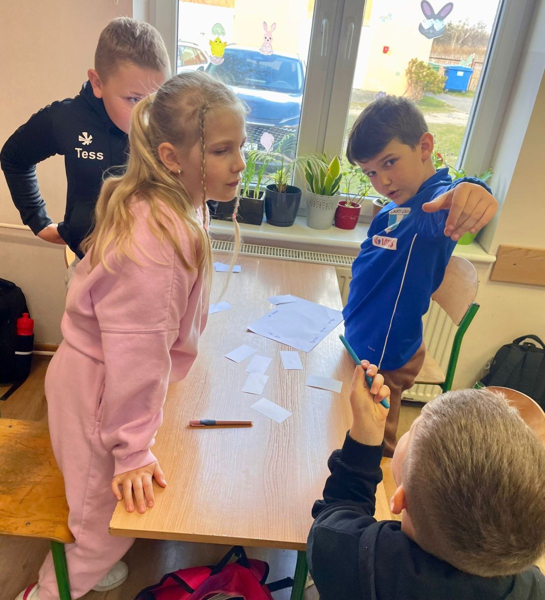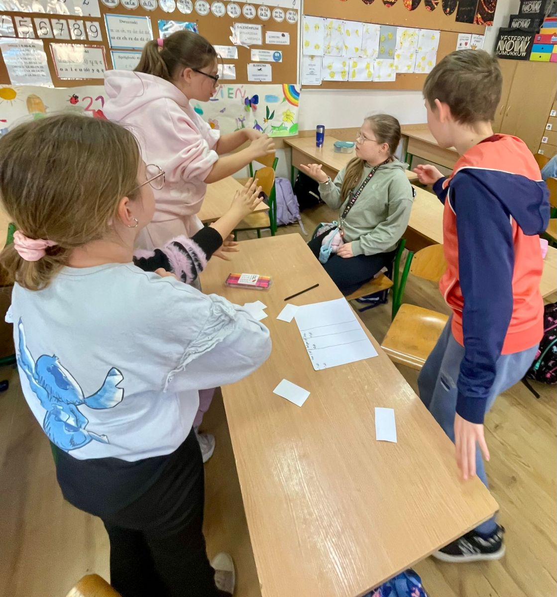Teoria szybko ustąpiła miejsca praktyce! Uczniowie z zapałem rozwiązywali tematyczne wykreślanki, rebusy i krzyżówki, utrwalając przy tym nazwy witamin oraz zasady higieny.