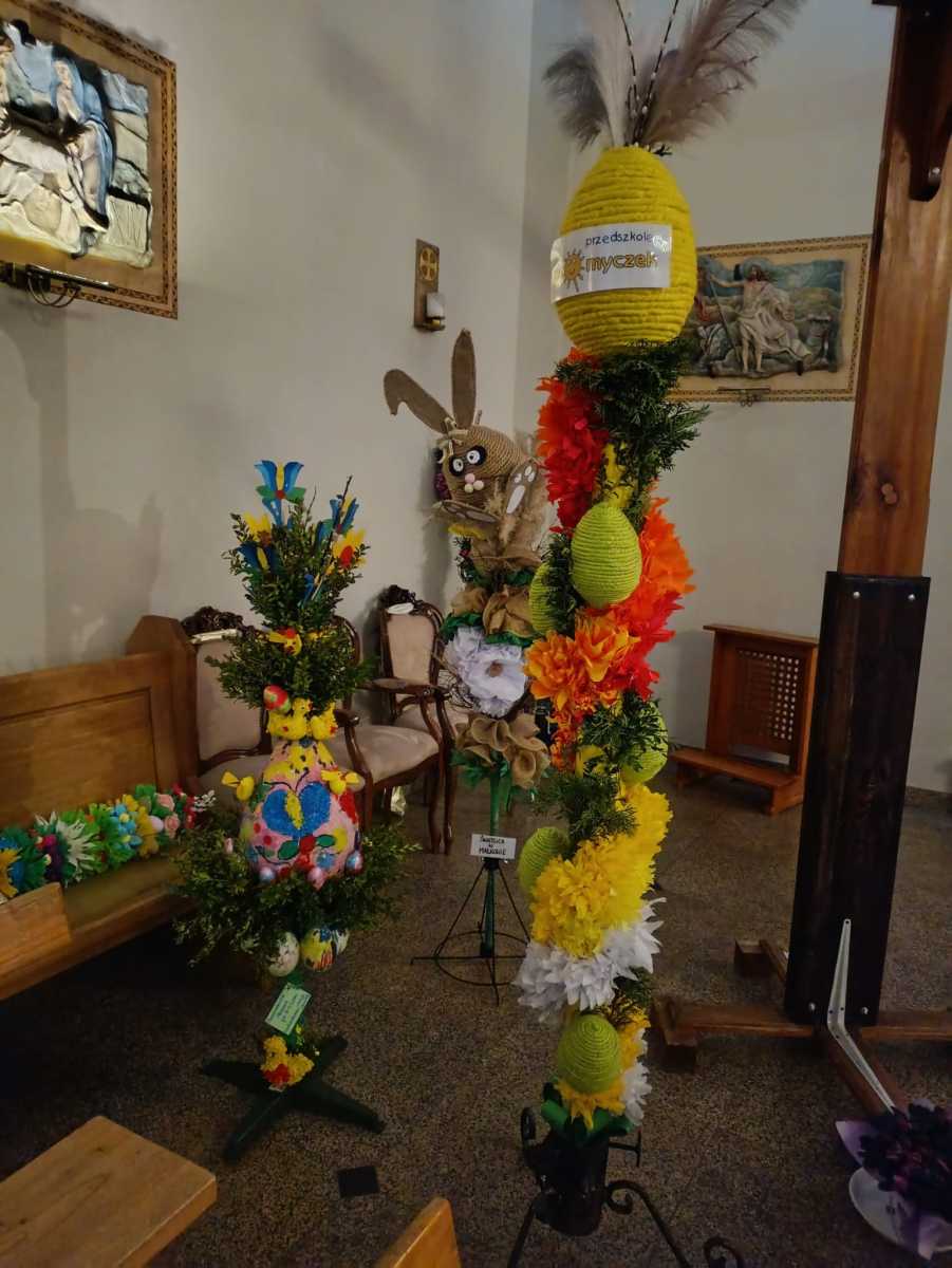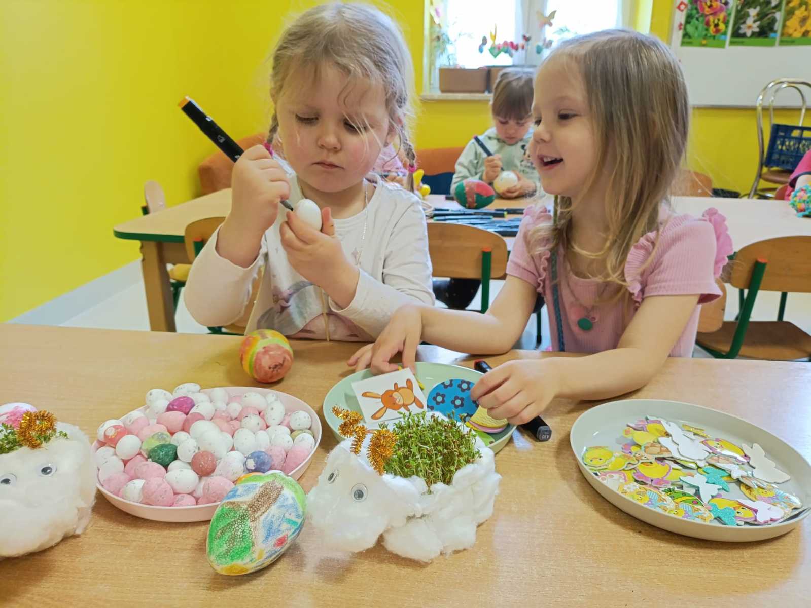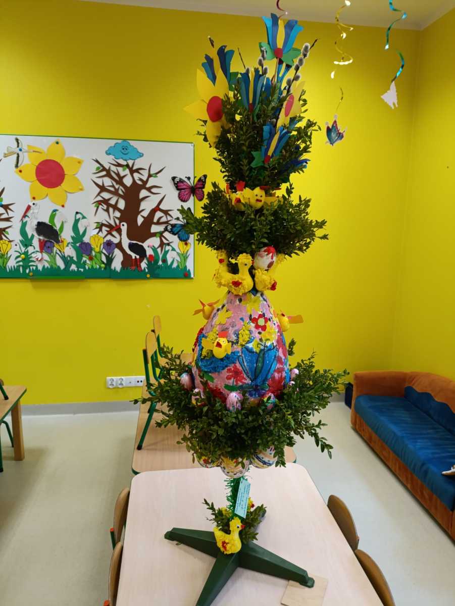 Przedszkolaki z dużym zaangażowaniem tworzyły barwne kompozycje inspirowane tematyką Świąt Wielkanocnych. W pracach pojawiły się motywy wiosenne, pisanki, baranki, kurczaczki oraz kwiaty. Była to doskonała okazja do rozwijania wyobraźni, kreatywności oraz sprawności manualnej. Praca zachwyciła jury pomysłowością oraz bogactwem kolorów i tradycyjnych elementów. Dzieci włożyły w jej wykonanie dużo serca i pracy, co przyniosło wspaniały efekt.