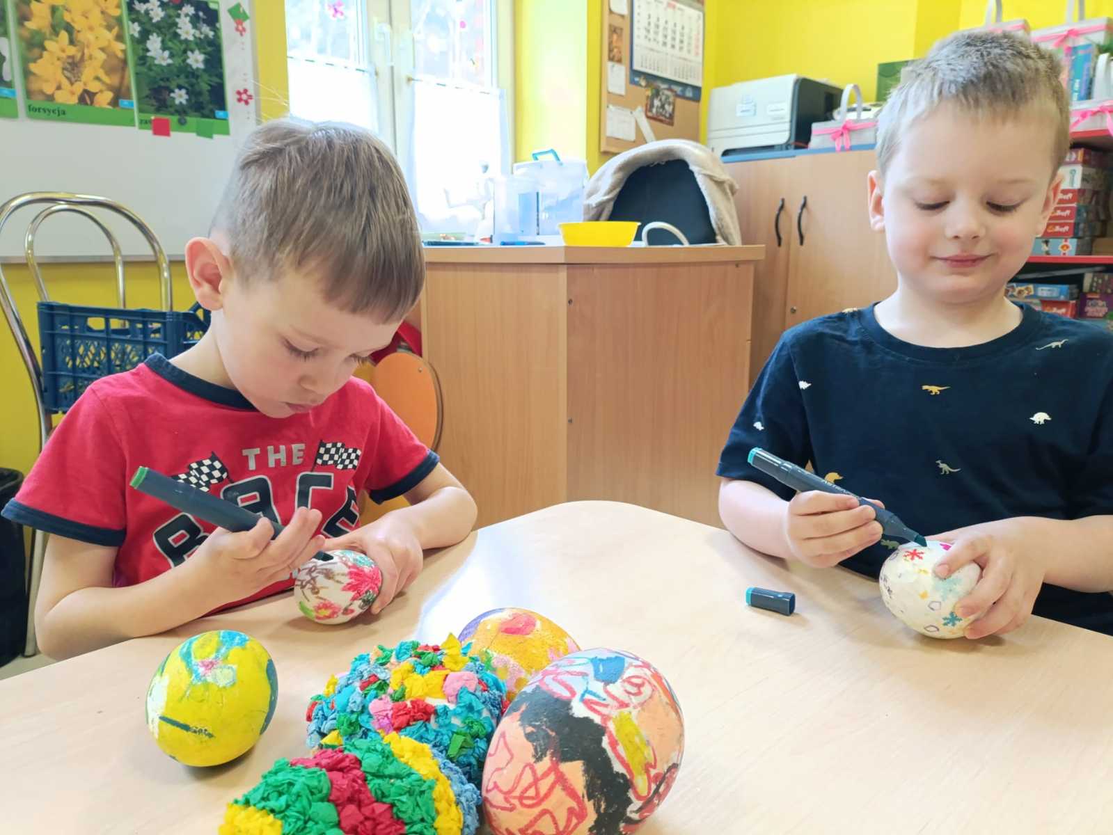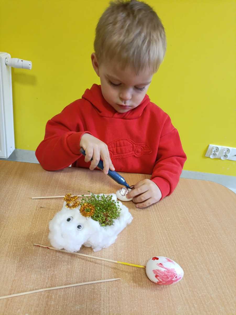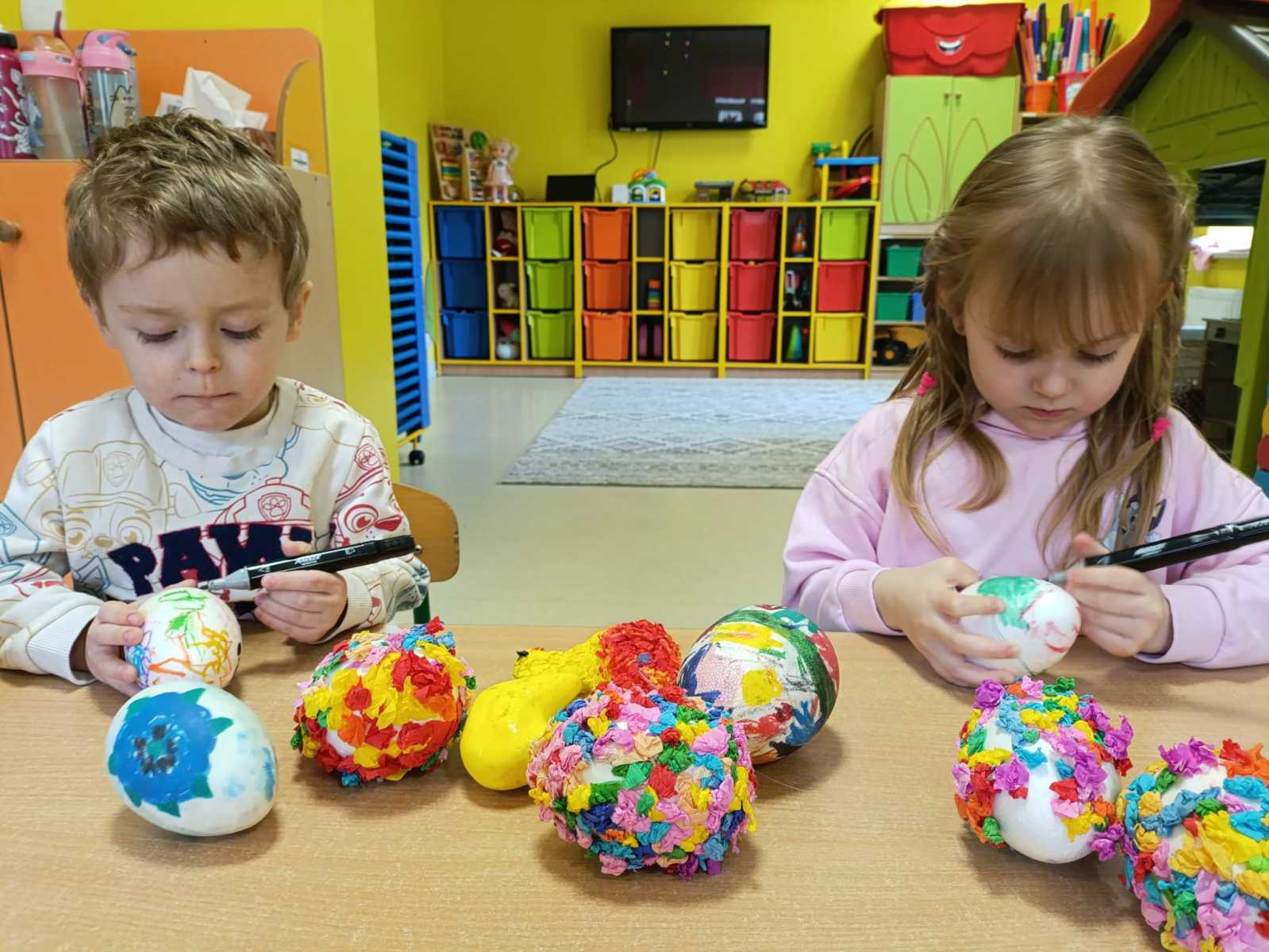 Przedszkolaki z dużym zaangażowaniem tworzyły barwne kompozycje inspirowane tematyką Świąt Wielkanocnych. W pracach pojawiły się motywy wiosenne, pisanki, baranki, kurczaczki oraz kwiaty. Była to doskonała okazja do rozwijania wyobraźni, kreatywności oraz sprawności manualnej. Praca zachwyciła jury pomysłowością oraz bogactwem kolorów i tradycyjnych elementów. Dzieci włożyły w jej wykonanie dużo serca i pracy, co przyniosło wspaniały efekt.
