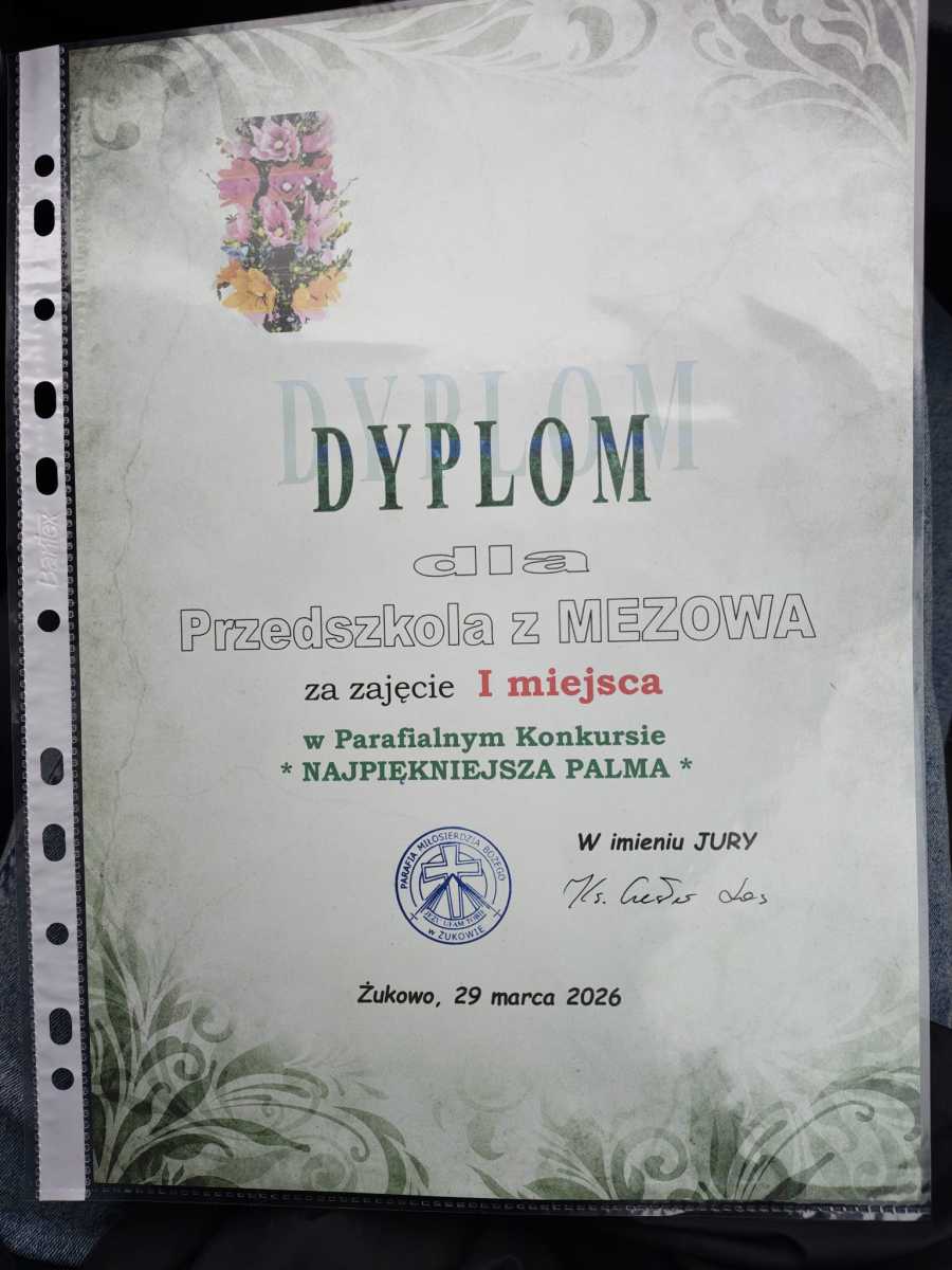 Dzieci z przedszkola w Mezowie zdobyły I miejsce w Konkursie „Najpiękniejsza Palma”.
