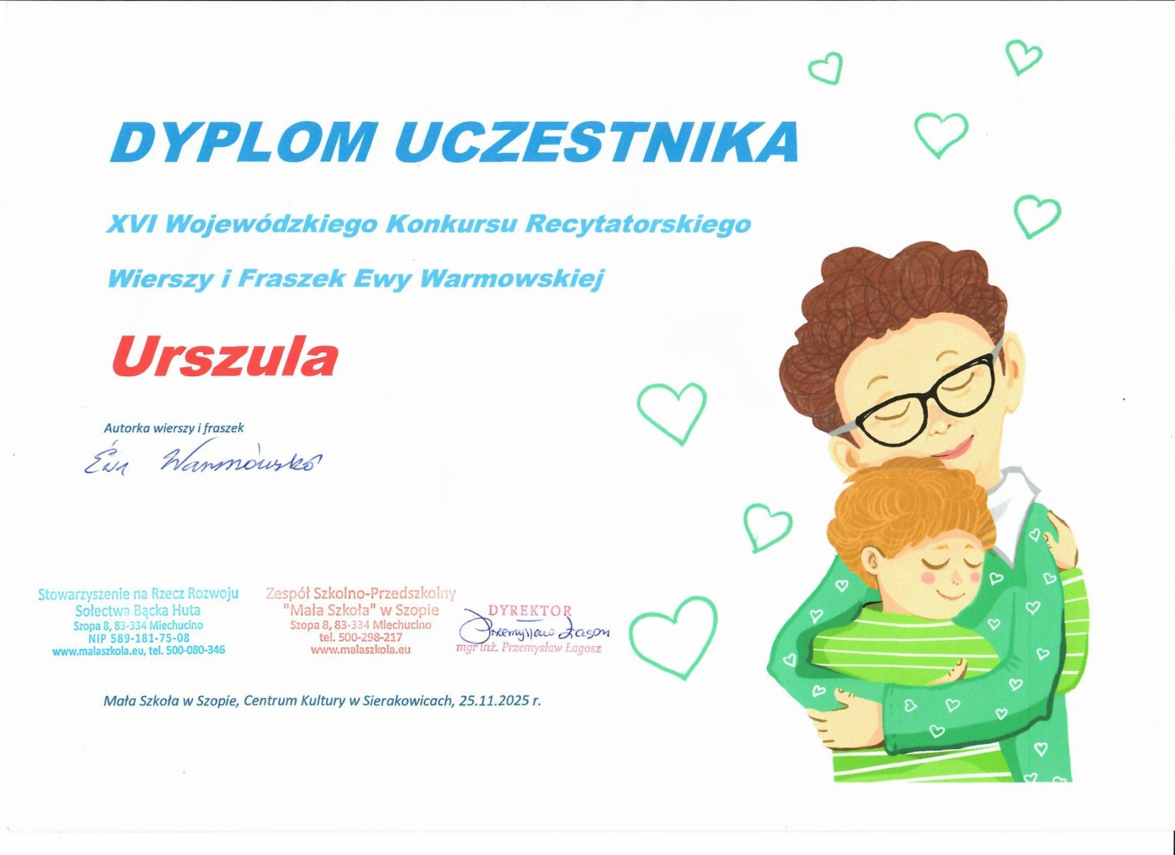 Dnia 14.11.2024r. wręczono nagrodę laureatowi Ogólnopolskiego Konkursu Plastycznego „Marzenia przedszkolaka” na podstawie wiersza Juliana Tuwima „Dyzio Marzyciel” w Przedszkolu nr 37 im. Juliana Tuwima w Rybniku. Z naszej szkoły w konkursie brały udział dzieci z Przedszkola w Dzierżążnie i Przedszkola „Baśniowy Zakątek” w Mezowie oraz świetlicy szkolnej dzieci młodszych.