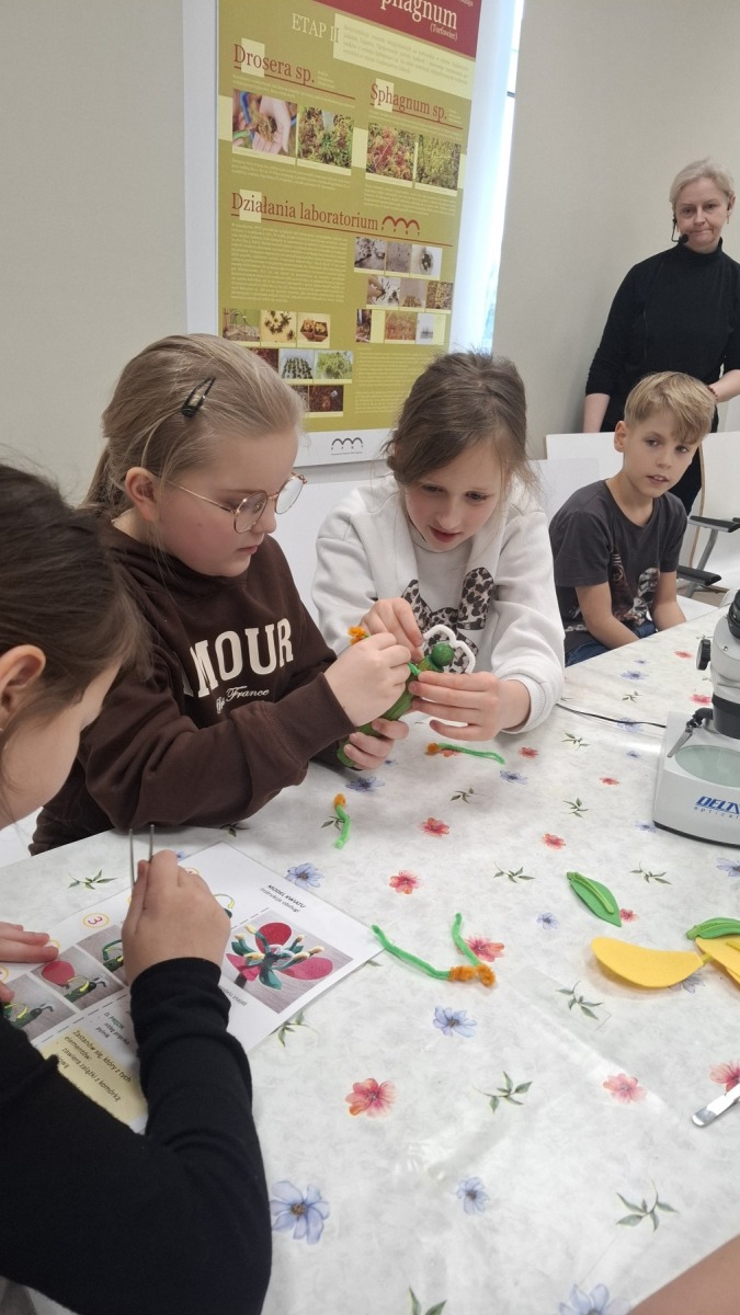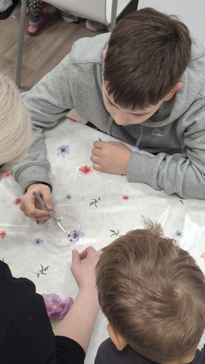 W poniedziałek 23.02.2026r. uczniowie klas III b i V b wraz z tymi, którzy uczęszczają na lekcje języka regionalnego – kaszubskiego wzięli udział w super przygodzie zwanej Zieloną Szkołą. Po przyjeździe do placówki uczestnicy zostali przywitani przez p. Natalię i p. Michała, którzy przedstawili regulamin pobytu w ośrodku. Później nastąpiło zakwaterowanie w swoich pokojach. W tym dniu wszyscy wzięli udział w warsztatach OZE – energia przyszłości, gdzie poznali zasady działania Odnawialnych źródeł energii również, ich zastosowanie a także korzyści, jakie przynoszą. Drugi dzień pobytu to warsztaty „Botanika w pigułce”. Uczniowie poznali podstawy botaniki – nauki o roślinach. Dowiedzieli się w jaki sposób rozpoznawać gatunki drzew, krzewów, roślin zielnych występujących w naszej okolicy. Uczyli się budowy roślin – korzeń, łodyga, liść, kwiat i owoc oraz ich znaczenia dla człowieka i przyrody. Wieczorne warsztaty prowadzone przez p. Tomasza Narczyńskiego zafascynowały uczniów, ponieważ dotyczyły „Nietoperzy Kaszubskiego Parku Krajobrazowego” i nie tylko. Poznali nietypowe zdolności nietoperzy np. wiszenie głową w dół, echolokację – czyli orientowanie się w przestrzeni za pomocą dźwięku. Kolejny dzień w Zielonej Szkole z warsztatami pt. „Owady – wszędobylskie stworzenia” o których w ciekawy sposób opowiadała p. Anna Borowicz, której pasji mógłby pozazdrościć każdy – osoba posiadająca ogrom wiedzy, ciekawostek, praktycznych informacji i – co najważniejsze – możliwość bezpośredniego kontaktu z owadami sprawiły, że uczniowie byli całkowicie pochłonięci tematem. Mieli okazję oglądać owady z różnych stron świata, w tym straszyki filipińskie, diabelskie i nowogwinejskie, karaluchy madagaskarskie. Dzięki przyrządom powiększającym, takim jak lupy, uczestnicy mogli z bliska przyjrzeć się budowie i zwyczajom tych zwierząt, co stanowiło fascynującą lekcję biologii. Warsztaty te dostarczyły uczestnikom wielu ciekawych informacji na temat życia i zwyczajów owadów, w tym tych, które nie występują w Polsce. Popołudniowe warsztaty odbyły się w terenie, gdzie uczniowie poznali Krajobraz polodowcowy KPK, malownicze połączenie morenowych wzgórz, licznych jezior rynnowych i głębokich dolin rzek. Charakterystyczne formy rzeźby terenu, ukształtowane przez lądolód, wszystko pokryte białą warstwą śniegu. Chwila zabawy na wzgórzach z turlaniem i zabawami się śniegu bardzo ucieszyła naszych uczniów. Przedostatni dzień – zajęcia warsztatowe dotyczące Roślinnych mechanizmów przetrwania zimy odbyły się w terenie, a później w sali edukacyjnej, gdzie królowały mikroskopy przez które zobaczyć można zawsze coś interesującego. Ostatnie zajęcia tego dnia dotyczyły tematu jeży „Bardzo w to wierzę – wspomagam”. Warsztaty zaczęły się od tego, że Pan Adam Michalak pokazał nam ile gatunków jeży i ich bliskich krewnych oraz tych dalszych jest na świecie. Opowiadał nam jak chronić jeże i inne gatunki zwierząt, że i my możemy im pomagać. Budując dla nich schronienia zimą oraz latem, lepianki z liści, ziemi itp. Pan Adam na końcu opowiedział o swoich przygodach w Australii i w USA. Wieczór uczniowie wraz z opiekunami spędzili przy ognisku, piekąc pyszne kiełbaski. Wspólne zabawy, gry edukacyjne i twórcze opowiadania oraz pokaz mody towarzyszyły nam przez cały pobyt w Zielonej Szkole. Dla uczestników ten pięciodniowy pobyt był niezapomniany i pełen wrażeń.