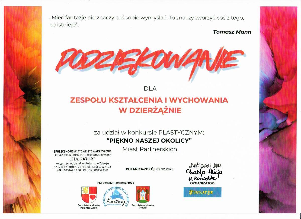 Wyróżnienia: Zuzanna z klasy Ia, Liliana z klasy Ib, Agnieszka z klasy Ib, Tomasz z klasy Ib, Anna z klasy Ib, Martyna z klasy IIa, Milena z klasy IIIb, Oliwia z klasy IIIb,