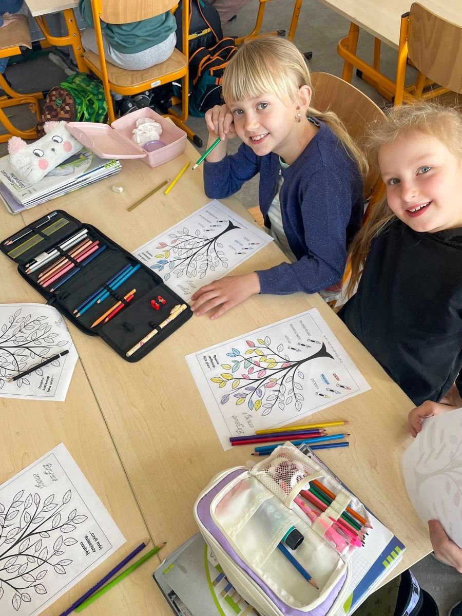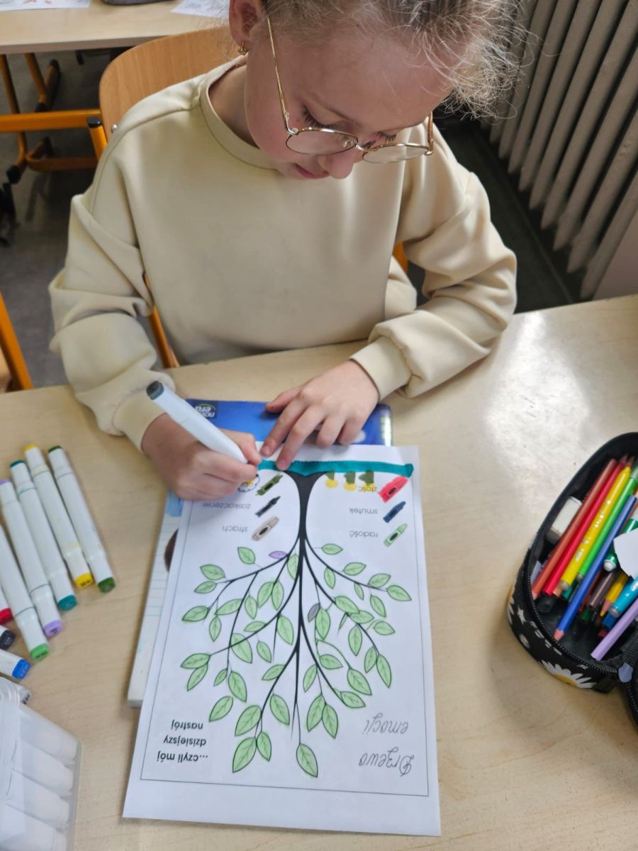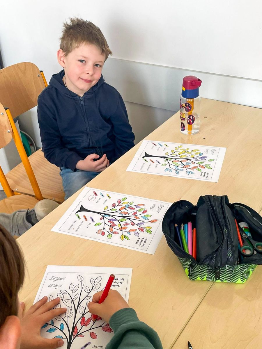 W ciągu naszego szkolnego tygodnia profilaktyki p. Roksana Rutkowska (pedagog specjalny) i p. Agnieszka Leman (psycholog szkolny) przeprowadziły we wszystkich klasach 1-3 zajęcia rozwijające kompetencje emocjonalno-społeczne. Uczniowie rozpoznawali i nazywali emocje, wyciągali wnioski z bajek edukacyjnych, tworzyli prace o swoim samopoczuciu oraz odgrywali scenki, ćwicząc dbanie o własne potrzeby z uwzględnieniem potrzeb innych.