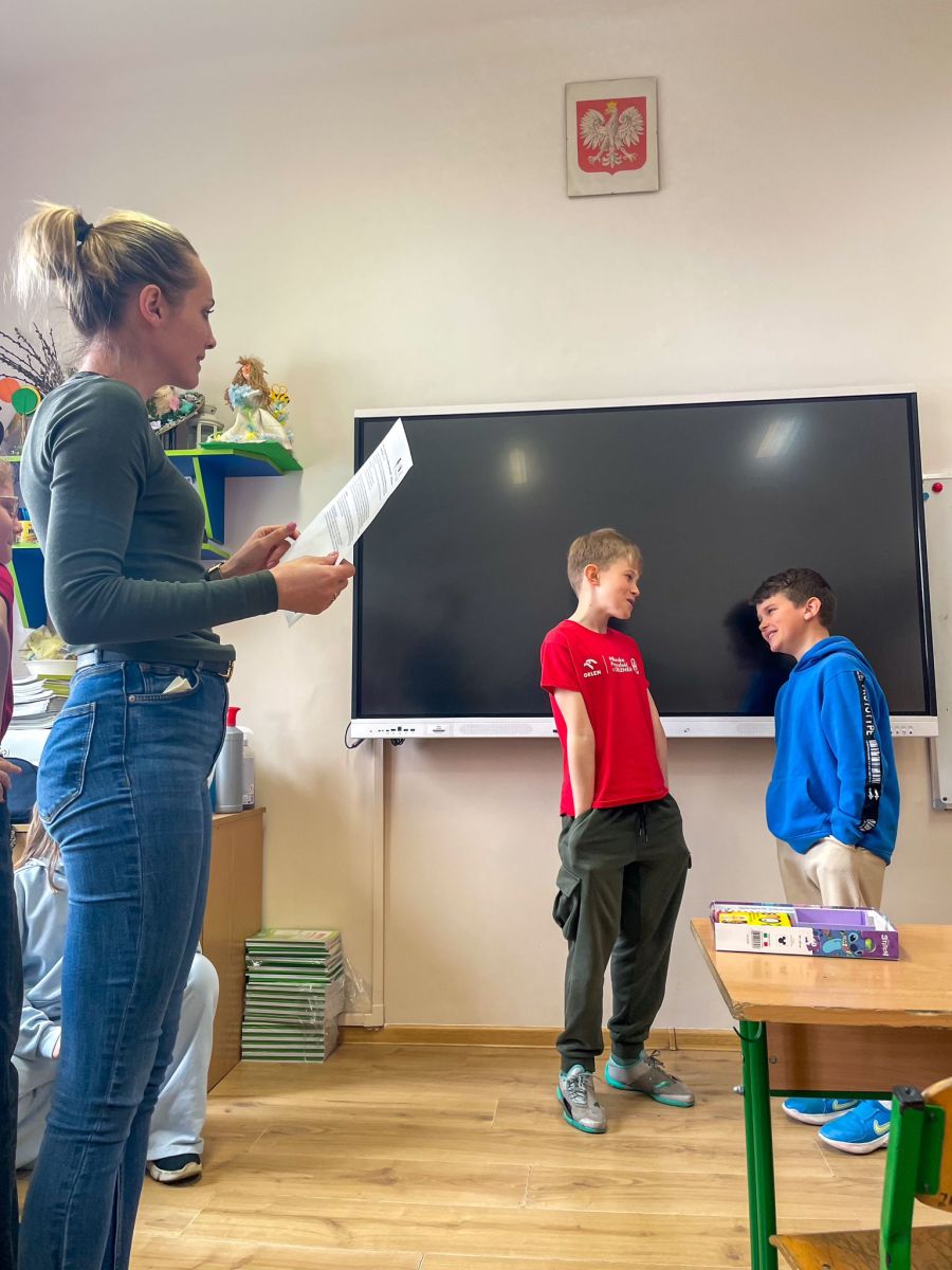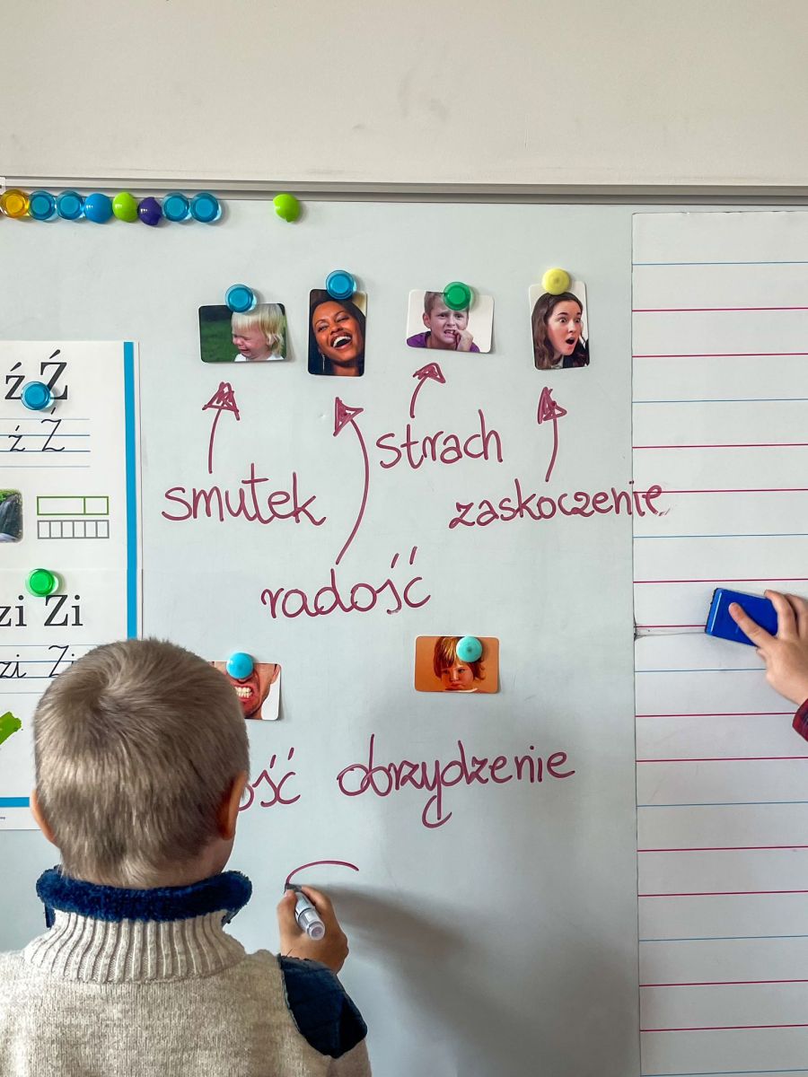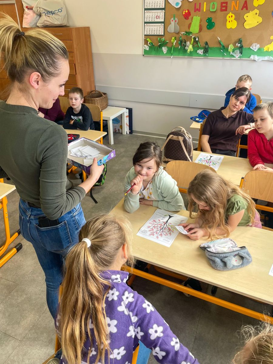 W ciągu naszego szkolnego tygodnia profilaktyki p. Roksana Rutkowska (pedagog specjalny) i p. Agnieszka Leman (psycholog szkolny) przeprowadziły we wszystkich klasach 1-3 zajęcia rozwijające kompetencje emocjonalno-społeczne. Uczniowie rozpoznawali i nazywali emocje, wyciągali wnioski z bajek edukacyjnych, tworzyli prace o swoim samopoczuciu oraz odgrywali scenki, ćwicząc dbanie o własne potrzeby z uwzględnieniem potrzeb innych.