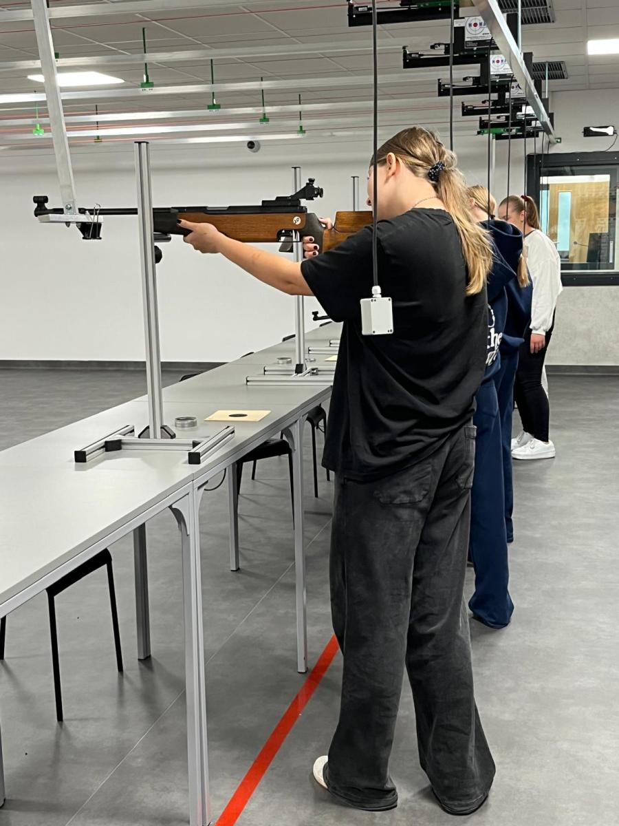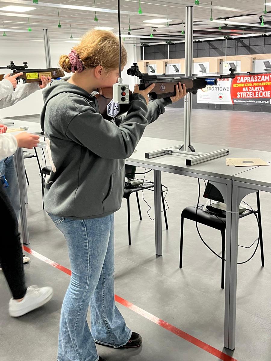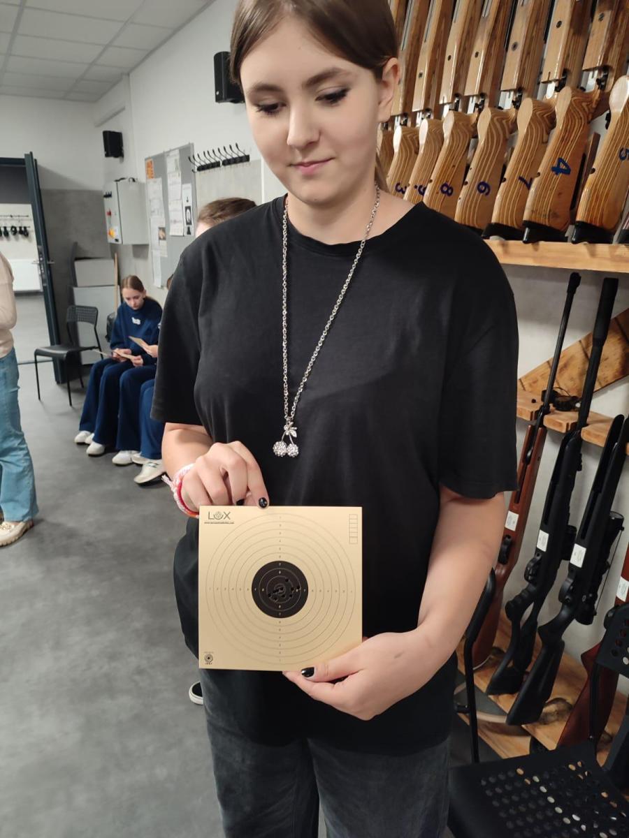 Uczniowie kl. VIIIb mieli okazję 1 października uczestniczyć w szkoleniu na strzelnicy. Instruktorką była m. in. absolwentka naszej szkoły Magdalena Malotka-Trzebiatowska. Od kilku lat zdobywa złote, srebrne i brązowe medale na mistrzostwach Europy, Polski czy województwa w strzelectwie w ramach Klubu Strzeleckiego Dziesiątka z Kartuz. Jej trenerem jest tata, p. Jerzy Malotka-Trzebiatowski, który przez ponad 12 lat zabiegał w różnych instytucjach, aby została wybudowana strzelnica.
