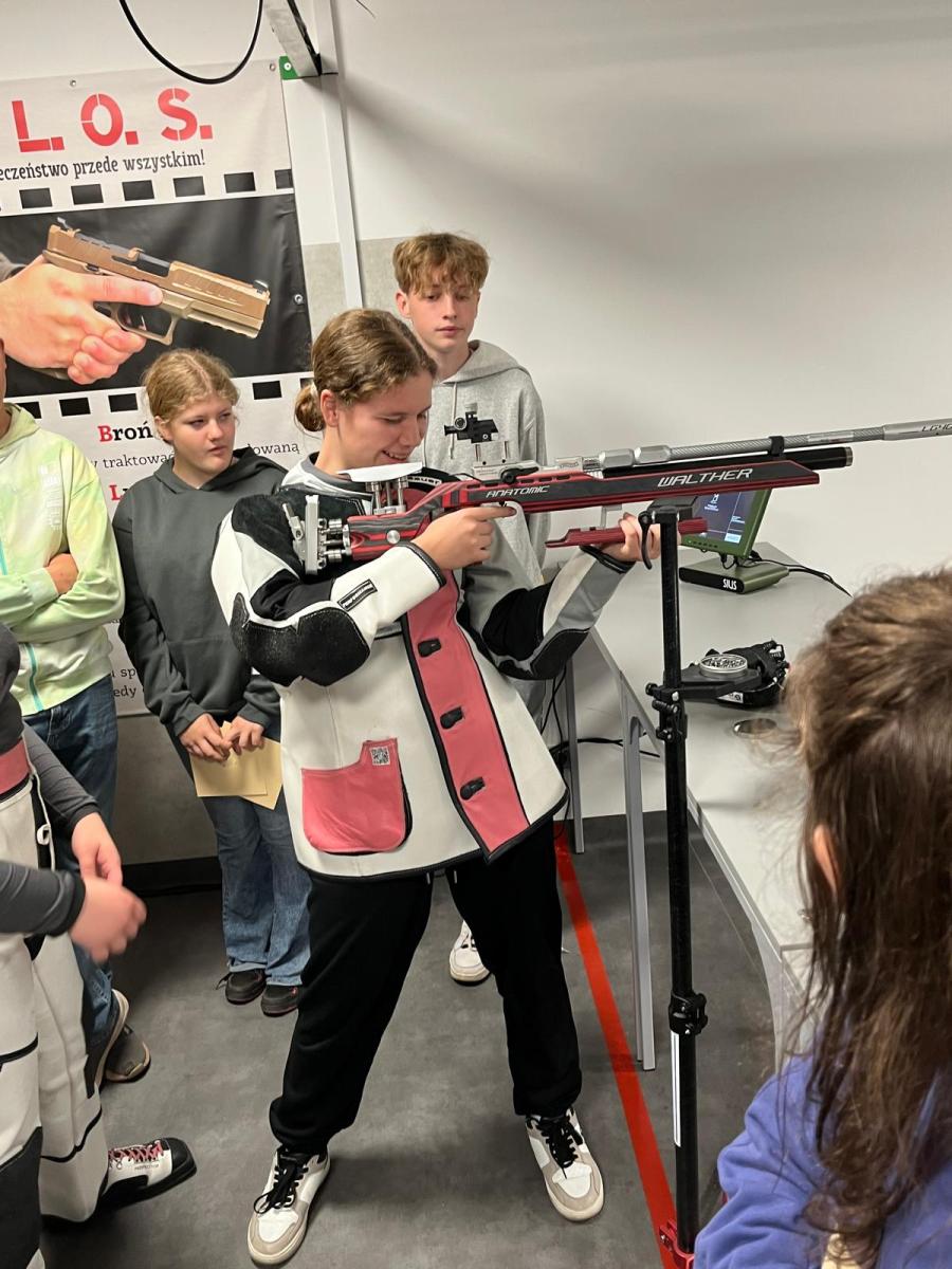 Uczniowie uczyli się strzelać z broni na strzelnicy 10- cio metrowej. Na początek zostali przeszkoleni przede wszystkim z zasad bezpieczeństwa i posługiwania się bronią. Zajęcia na strzelnicy wzbudziły duże zainteresowanie ze strony naszej młodzieży. Tym bardziej, że był to ich pierwszy raz na tego rodzaju zajęciach w ramach edukacji dla bezpieczeństwa.