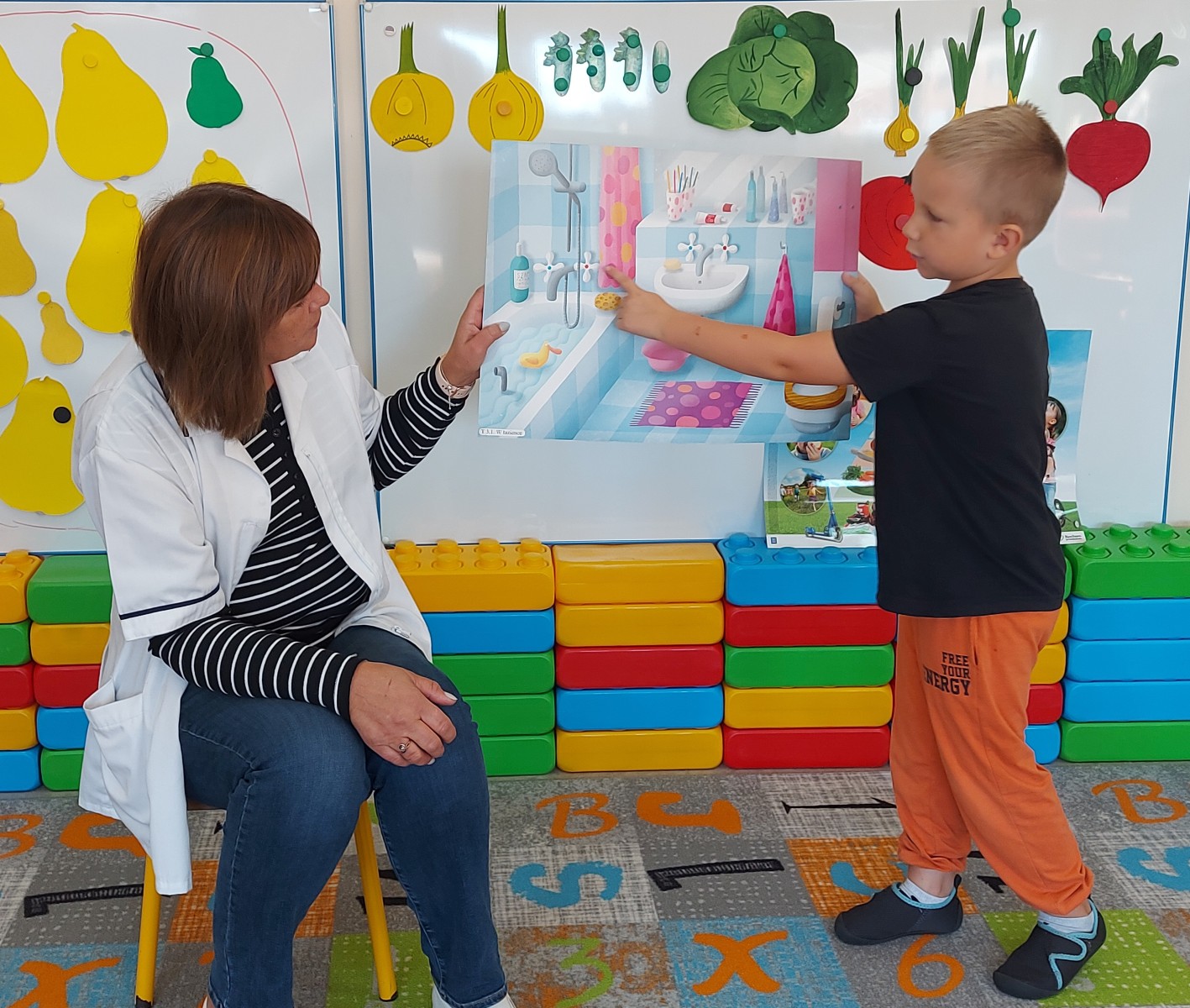 Dnia 03.10.2025r. odbyły się w Przedszkolu w Dzierżążnie warsztaty edukacyjne na temat „Jak dbamy o nasze zęby?” z panią Aliną Licą – pielęgniarką medycyny szkolnej.