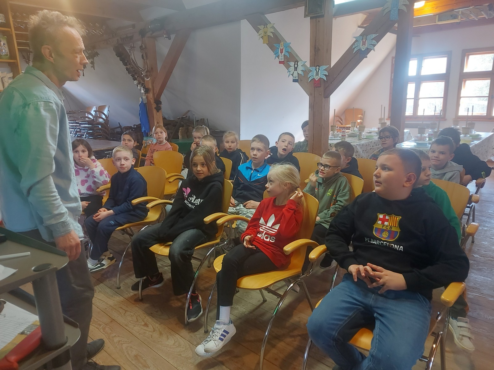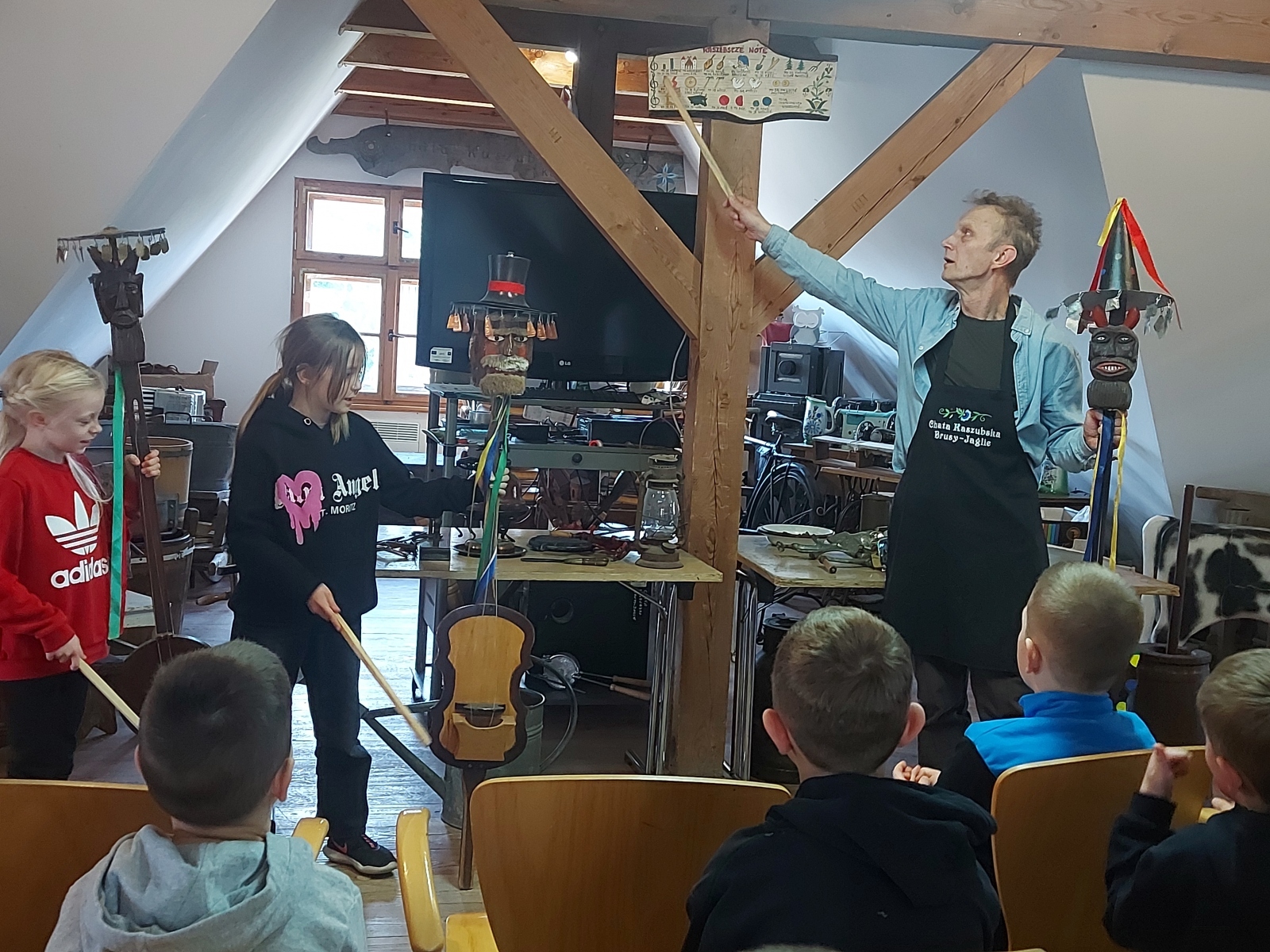 Dnia 28.03.2026r. odbyła się wycieczka autokarowa na dwa warsztaty regionalne „Kaszubskie myślenie”, czyli jak to z mleczarzem na wsi było…” i „Bez prądu na Zaborach” w Chacie Kaszubskiej im. Józefa Chełmowskiego w Brusach – Jagliach. W zajęciach uczestniczyli uczniowie uczęszczający na lekcje języka regionalno – kaszubskiego z klasy IA , IIA i B i IIIB.