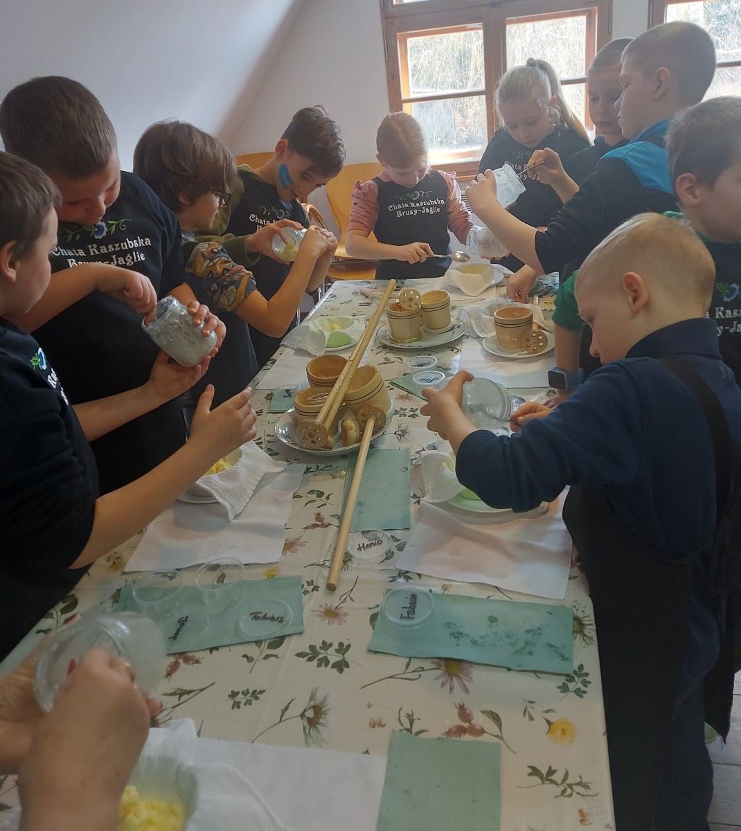 Dnia 28.03.2026r. odbyła się wycieczka autokarowa na dwa warsztaty regionalne „Kaszubskie myślenie”, czyli jak to z mleczarzem na wsi było…” i „Bez prądu na Zaborach” w Chacie Kaszubskiej im. Józefa Chełmowskiego w Brusach – Jagliach. W zajęciach uczestniczyli uczniowie uczęszczający na lekcje języka regionalno – kaszubskiego z klasy IA , IIA i B i IIIB.