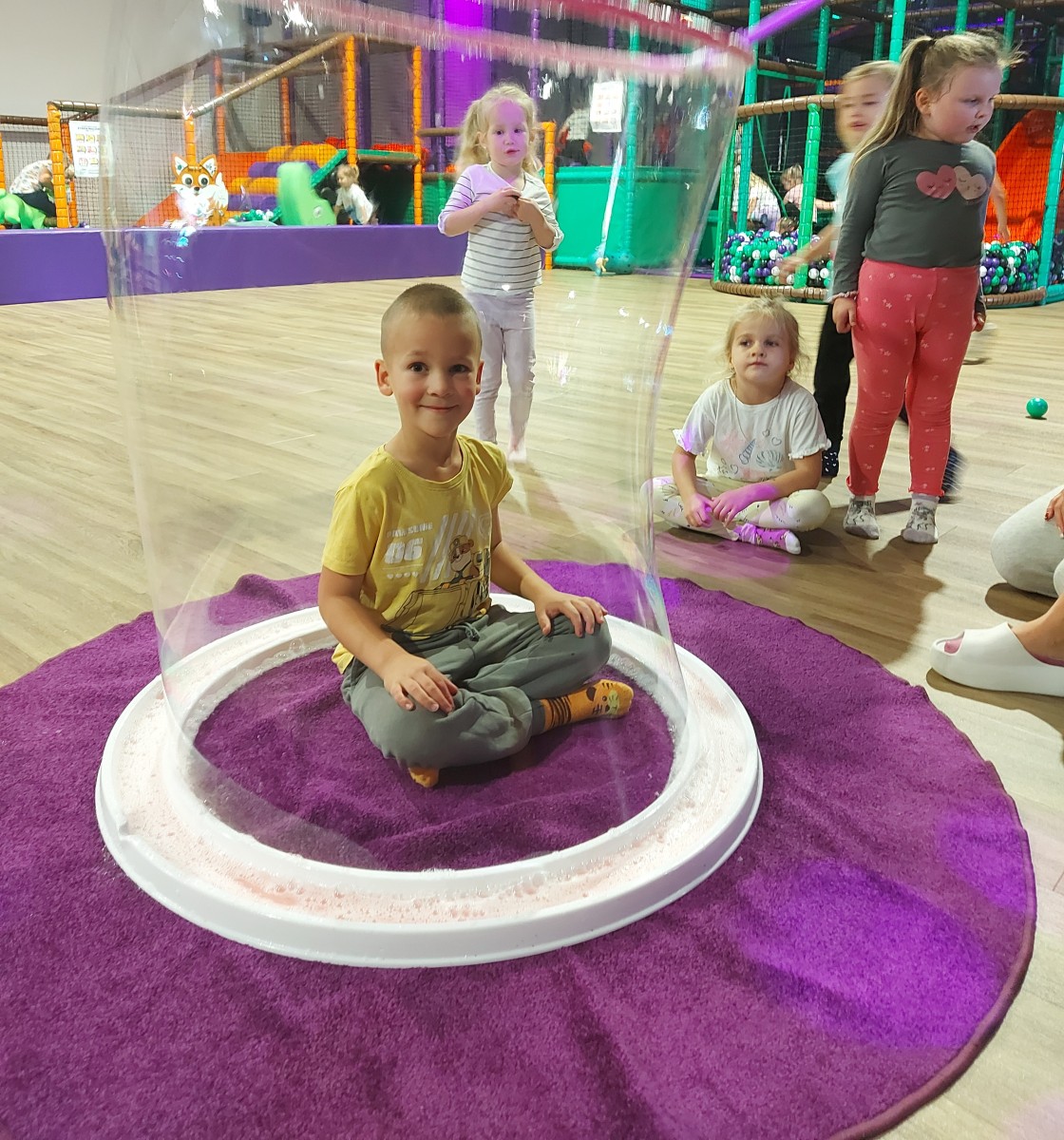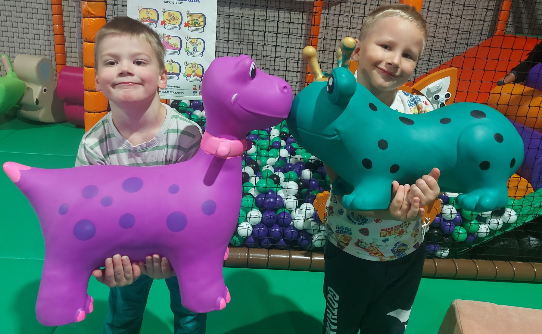 Dzieci w czasie zabaw korzystały z różnych atrakcji: Ekscytujący małpi gaj – labirynty, zjeżdżalnie, mostki i przeszkody, które zapewniły dzieciom mnóstwo radości i aktywnej zabawy. Strefa trampolin – przestrzeń do skakania, obracania się i wykonywania różnych akrobacji, idealna do wyładowania nadmiaru energii. Emocjonująca tyrolka – przejazd na linie, który dostarczył dreszczyku emocji i wrażeń jak z parku linowego. Tor ninja – zestaw wyzwań i przeszkód, które testowały siłę, zręczność i odwagę. Bezpieczna strefa malucha – specjalnie wydzielone miejsce dla najmłodszych dzieci z miękkimi zabawkami i łagodnymi konstrukcjami, gwarantujące bezpieczeństwo i radość. I wiele innych atrakcji! – interaktywne zabawy edukacyjne, konkursy, mini – zjeżdżalnie oraz kąciki kreatywne, w których dzieci mogły rozwijać swoją wyobraźnię.