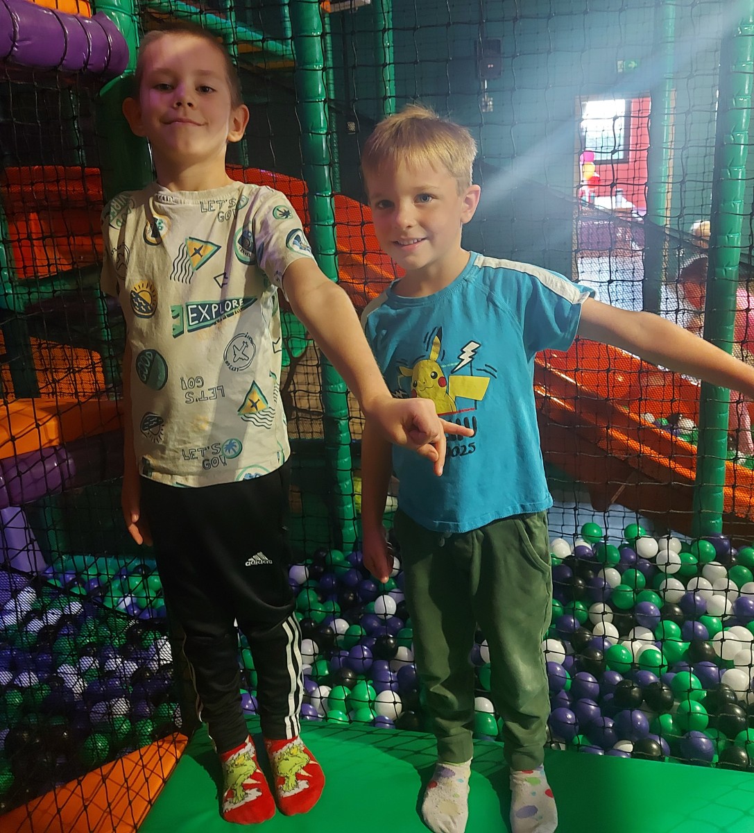 Dzieci w czasie zabaw korzystały z różnych atrakcji: Ekscytujący małpi gaj – labirynty, zjeżdżalnie, mostki i przeszkody, które zapewniły dzieciom mnóstwo radości i aktywnej zabawy. Strefa trampolin – przestrzeń do skakania, obracania się i wykonywania różnych akrobacji, idealna do wyładowania nadmiaru energii. Emocjonująca tyrolka – przejazd na linie, który dostarczył dreszczyku emocji i wrażeń jak z parku linowego. Tor ninja – zestaw wyzwań i przeszkód, które testowały siłę, zręczność i odwagę. Bezpieczna strefa malucha – specjalnie wydzielone miejsce dla najmłodszych dzieci z miękkimi zabawkami i łagodnymi konstrukcjami, gwarantujące bezpieczeństwo i radość. I wiele innych atrakcji! – interaktywne zabawy edukacyjne, konkursy, mini – zjeżdżalnie oraz kąciki kreatywne, w których dzieci mogły rozwijać swoją wyobraźnię.