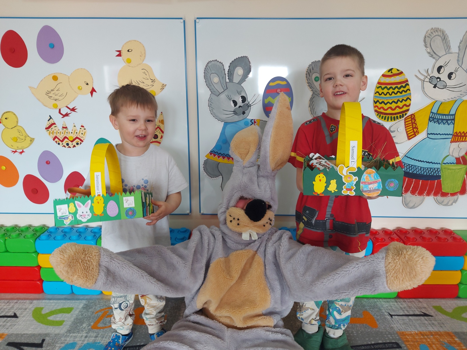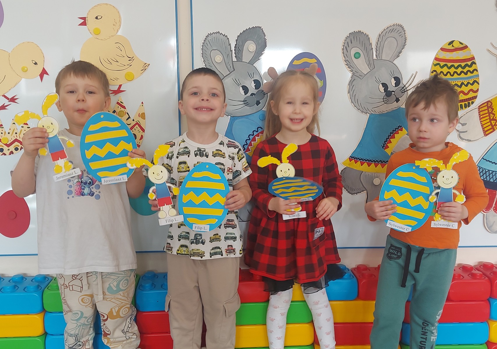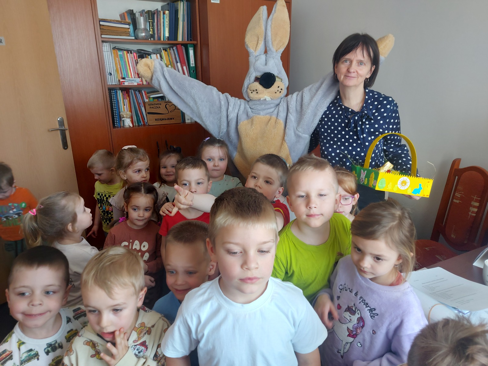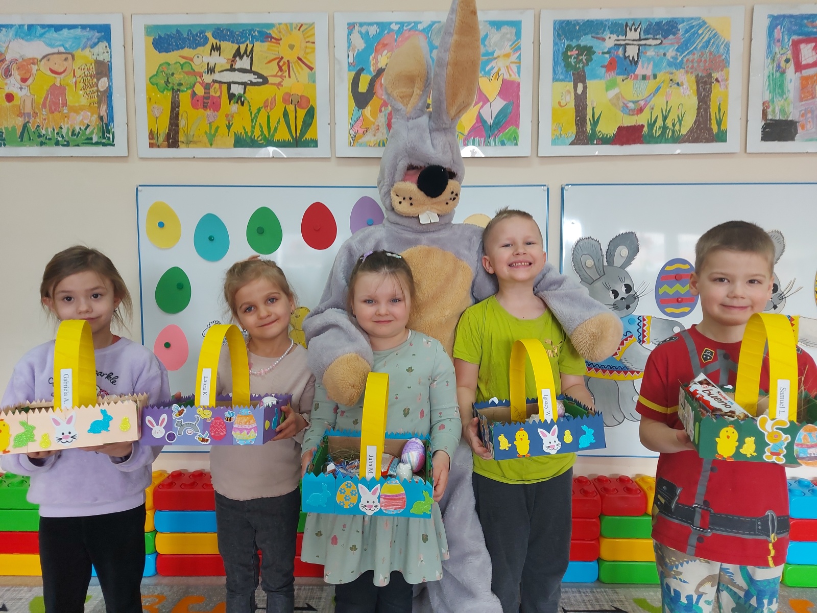 Dnia 01.04.2026r. w Przedszkolu w Dzierżążnie odbyły się zabawy integracyjne z Zającem Wielkanocnym. Przedszkolaki dla Zająca udekorowały salę świątecznymi ozdobami, śpiewały piosenki, recytowały wiersze, opowiadały o zasadach dobrego zachowania się, rozwiązywały zagadki, wykonywały różne ozdoby wielkanocne, np. baranek, jajka oraz bawiły się przy różnych zabawach wielkanocnych. Dzieci bardzo cieszyły się, że „Zajączek” o nich pamiętał! Zając Wielkanocny chodził z dziećmi po całej szkole, sprawił dzieciom wielką radość, przyniósł różne niespodzianki, prezenty do koszyczków. Poprzez udział w zajęciach edukacyjnych o tematyce świąt wielkanocnych kultywowano zwyczaje i obrzędy wielkanocne na Kaszubach: przygotowanie palm wielkanocnych, święcenie pokarmów – śniadanie wielkanocne i dzielenie się święconką, wzbogacano słownictwo i logiczne myślenie oraz rozwijano orientację przestrzenną, zwracano uwagę na bezpieczeństwo i kulturalne zachowanie – etykieta, maniery, zacieśniano więzi emocjonalne między dziećmi i wprowadzano przyjazną oraz radosną atmosferę.
