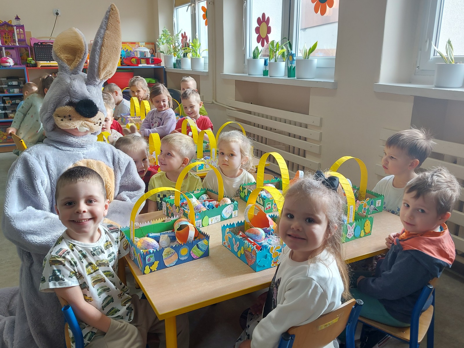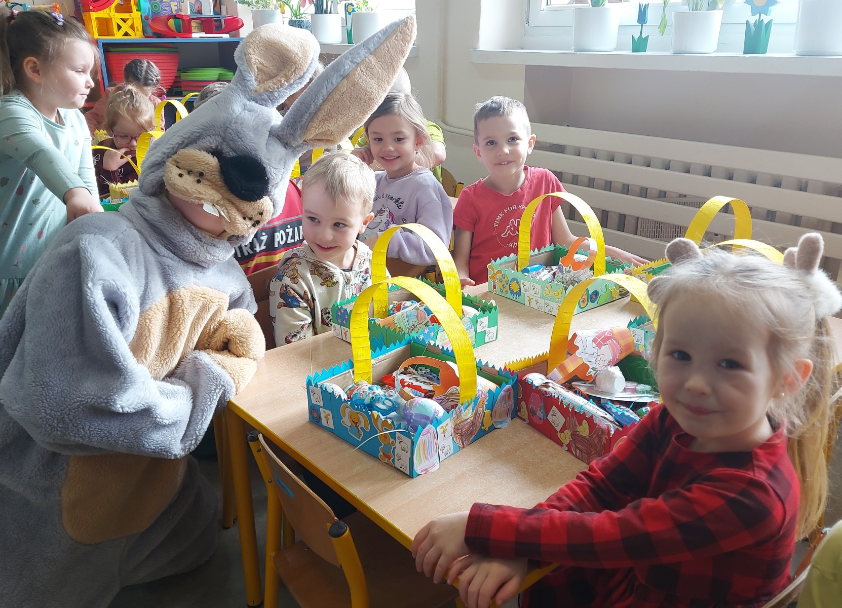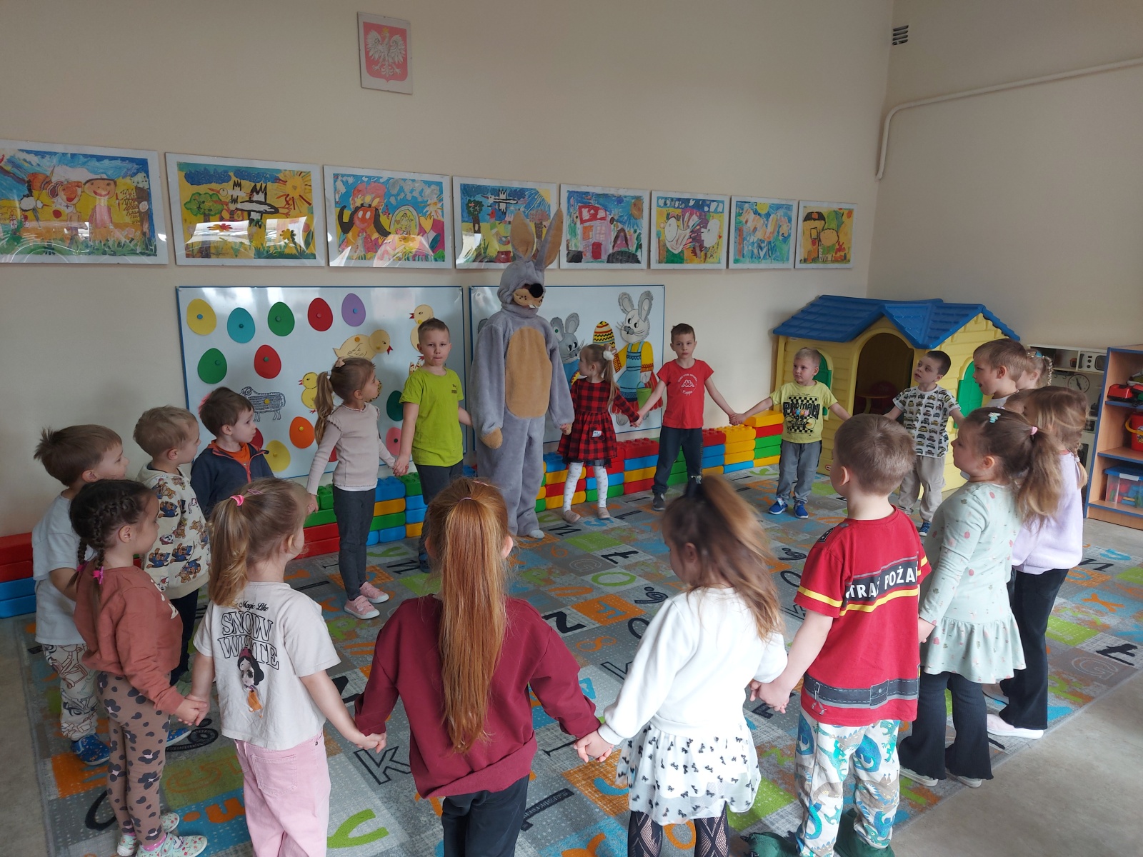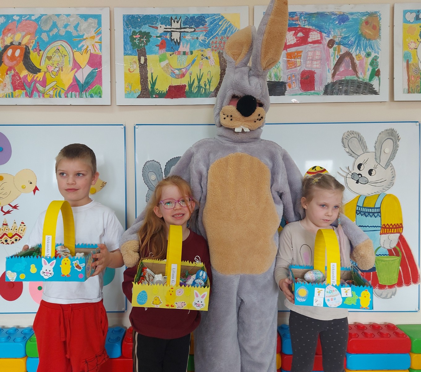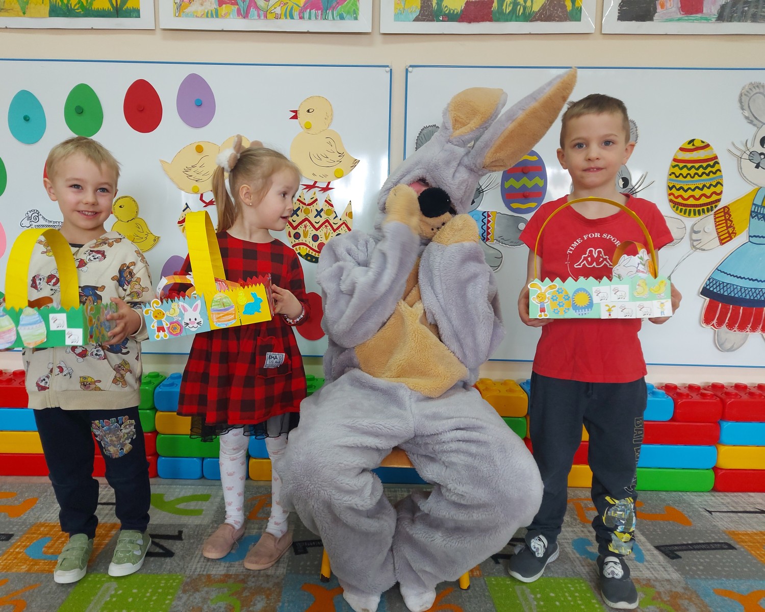 Dnia 01.04.2026r. w Przedszkolu w Dzierżążnie odbyły się zabawy integracyjne z Zającem Wielkanocnym. Przedszkolaki dla Zająca udekorowały salę świątecznymi ozdobami, śpiewały piosenki, recytowały wiersze, opowiadały o zasadach dobrego zachowania się, rozwiązywały zagadki, wykonywały różne ozdoby wielkanocne, np. baranek, jajka oraz bawiły się przy różnych zabawach wielkanocnych. Dzieci bardzo cieszyły się, że „Zajączek” o nich pamiętał! Zając Wielkanocny chodził z dziećmi po całej szkole, sprawił dzieciom wielką radość, przyniósł różne niespodzianki, prezenty do koszyczków. Poprzez udział w zajęciach edukacyjnych o tematyce świąt wielkanocnych kultywowano zwyczaje i obrzędy wielkanocne na Kaszubach: przygotowanie palm wielkanocnych, święcenie pokarmów – śniadanie wielkanocne i dzielenie się święconką, wzbogacano słownictwo i logiczne myślenie oraz rozwijano orientację przestrzenną, zwracano uwagę na bezpieczeństwo i kulturalne zachowanie – etykieta, maniery, zacieśniano więzi emocjonalne między dziećmi i wprowadzano przyjazną oraz radosną atmosferę.
