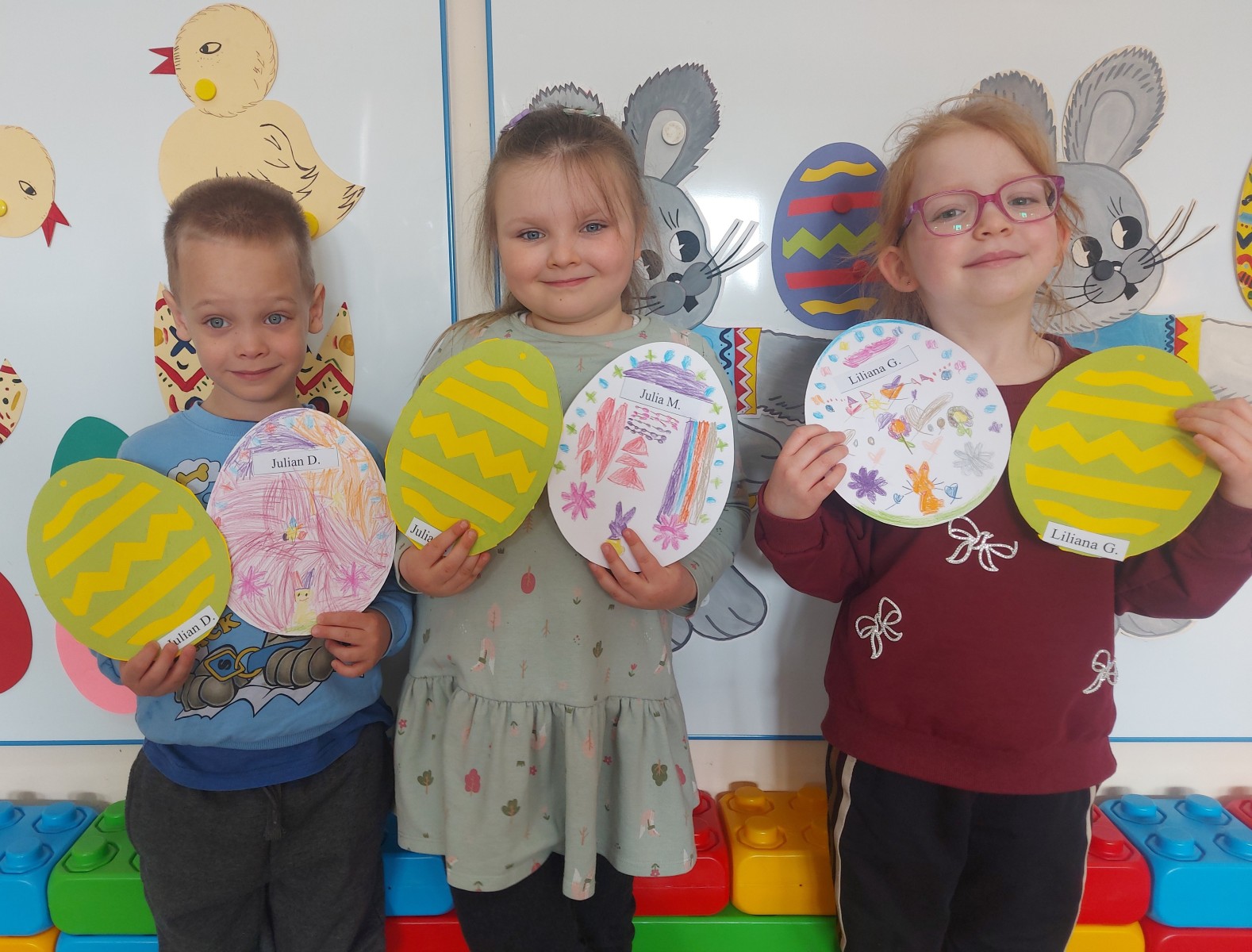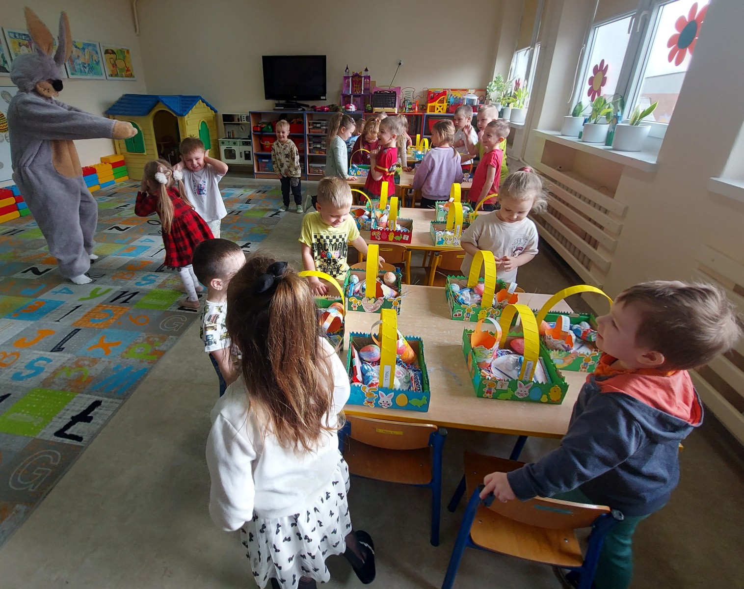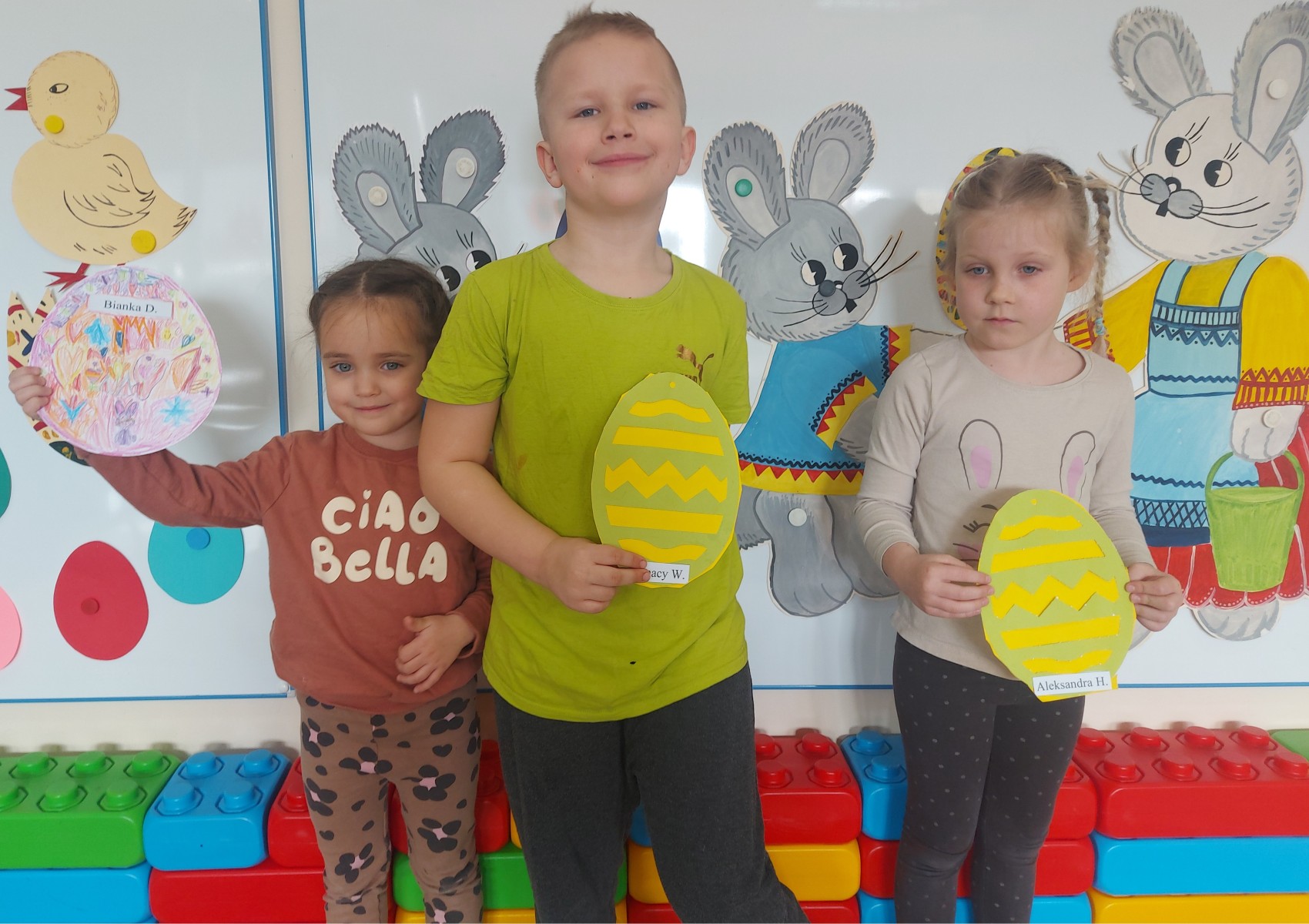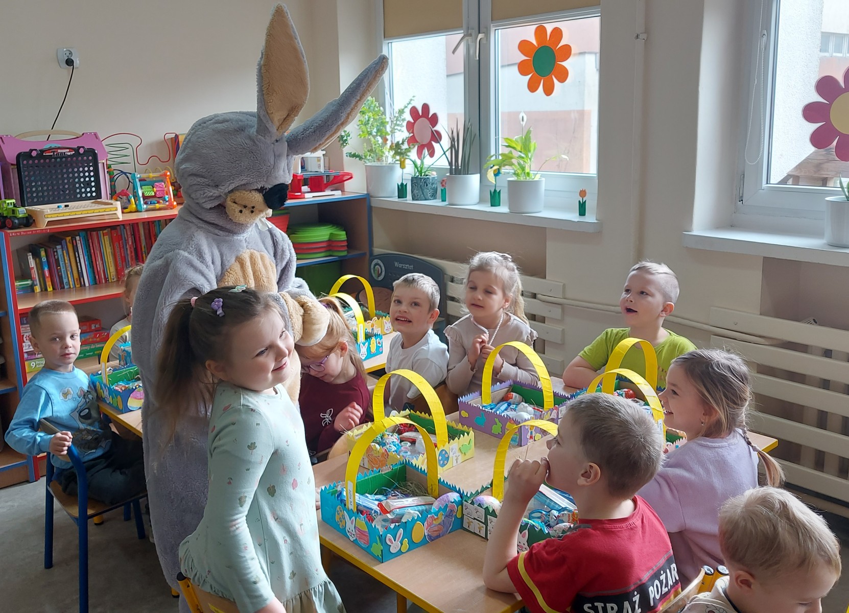 Dnia 01.04.2026r. w Przedszkolu w Dzierżążnie odbyły się zabawy integracyjne z Zającem Wielkanocnym. Przedszkolaki dla Zająca udekorowały salę świątecznymi ozdobami, śpiewały piosenki, recytowały wiersze, opowiadały o zasadach dobrego zachowania się, rozwiązywały zagadki, wykonywały różne ozdoby wielkanocne, np. baranek, jajka oraz bawiły się przy różnych zabawach wielkanocnych. Dzieci bardzo cieszyły się, że „Zajączek” o nich pamiętał! Zając Wielkanocny chodził z dziećmi po całej szkole, sprawił dzieciom wielką radość, przyniósł różne niespodzianki, prezenty do koszyczków. Poprzez udział w zajęciach edukacyjnych o tematyce świąt wielkanocnych kultywowano zwyczaje i obrzędy wielkanocne na Kaszubach: przygotowanie palm wielkanocnych, święcenie pokarmów – śniadanie wielkanocne i dzielenie się święconką, wzbogacano słownictwo i logiczne myślenie oraz rozwijano orientację przestrzenną, zwracano uwagę na bezpieczeństwo i kulturalne zachowanie – etykieta, maniery, zacieśniano więzi emocjonalne między dziećmi i wprowadzano przyjazną oraz radosną atmosferę.